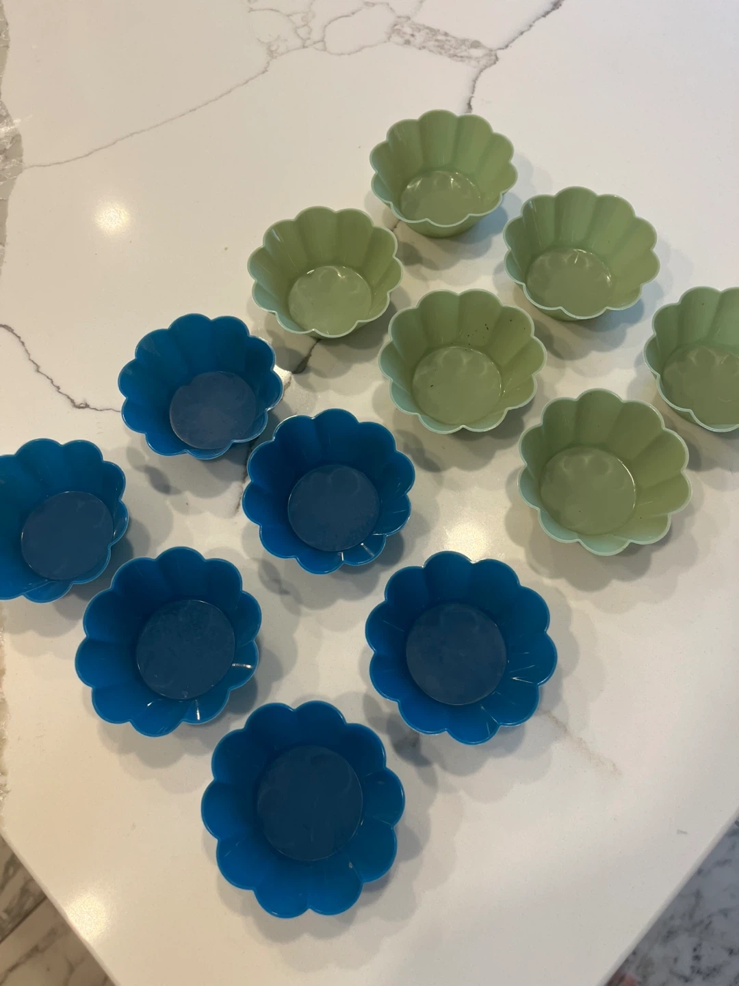Selling a set of silicone muffin cups! There are two colours: blue and green. They're in great shape and ready for your baking adventures.