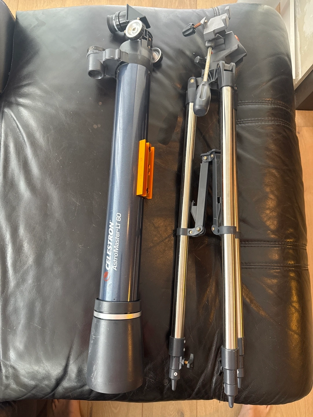 Looking to sell my Celestron AstroMaster LT 60 telescope. It needs love to get back into shape but it does work. One of the mount tightened is bent and there is very minor rust on replaceable parts (I think or the colour of the screw is darker steel).
