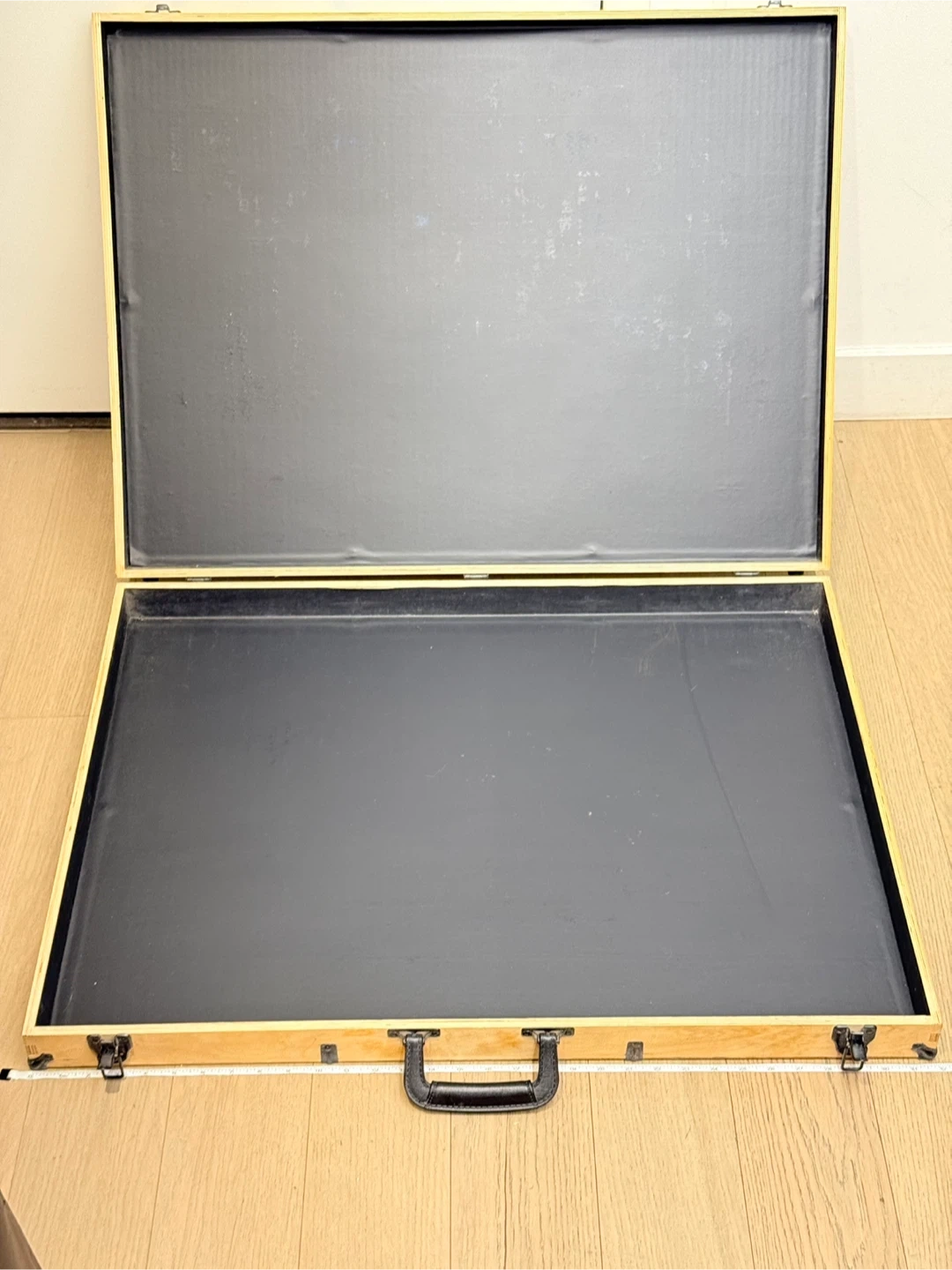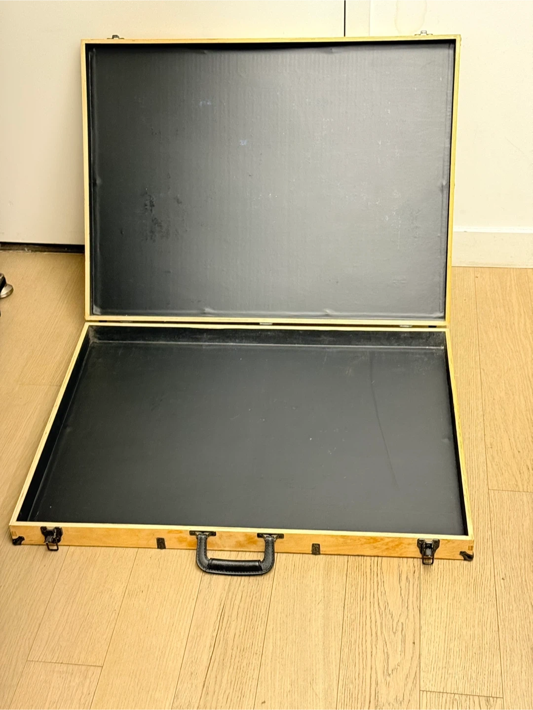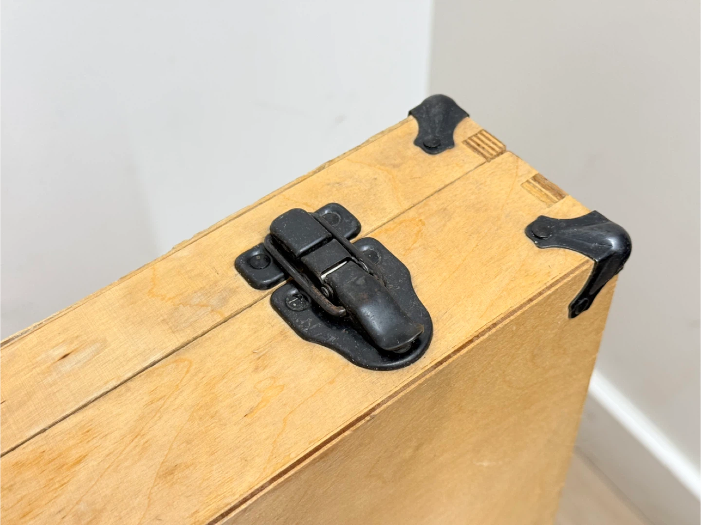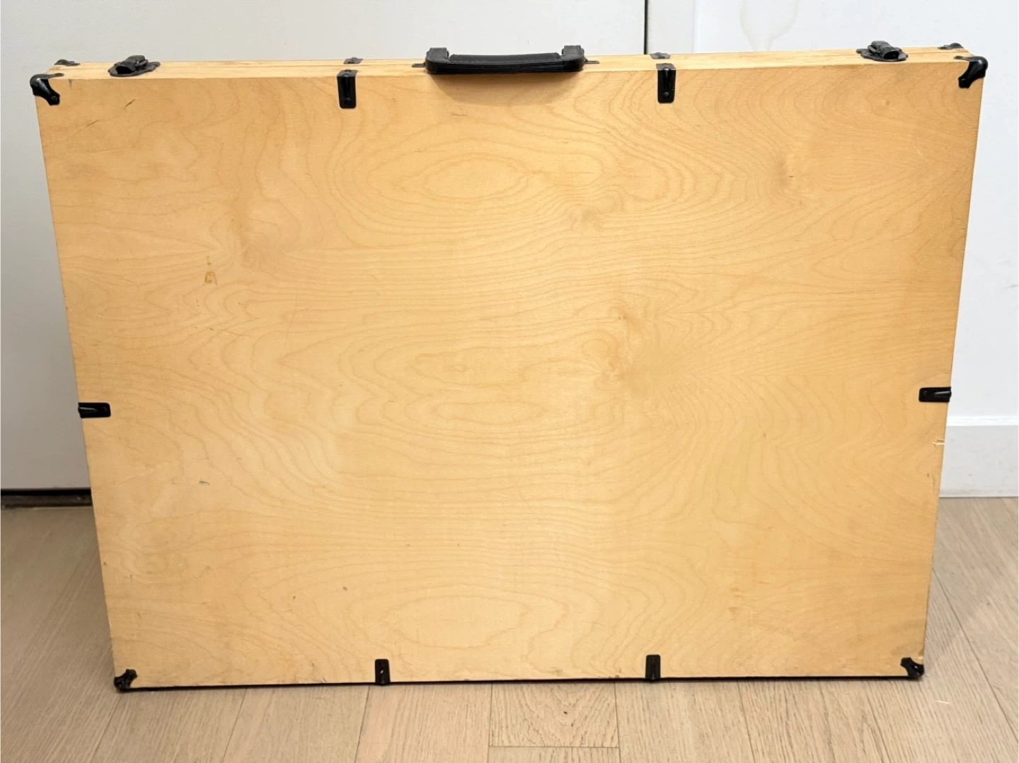 Selling a Vintage wooden art portfolio case. It has a handle and metal clasps for secure closure. Perfect for transporting artwork or documents.