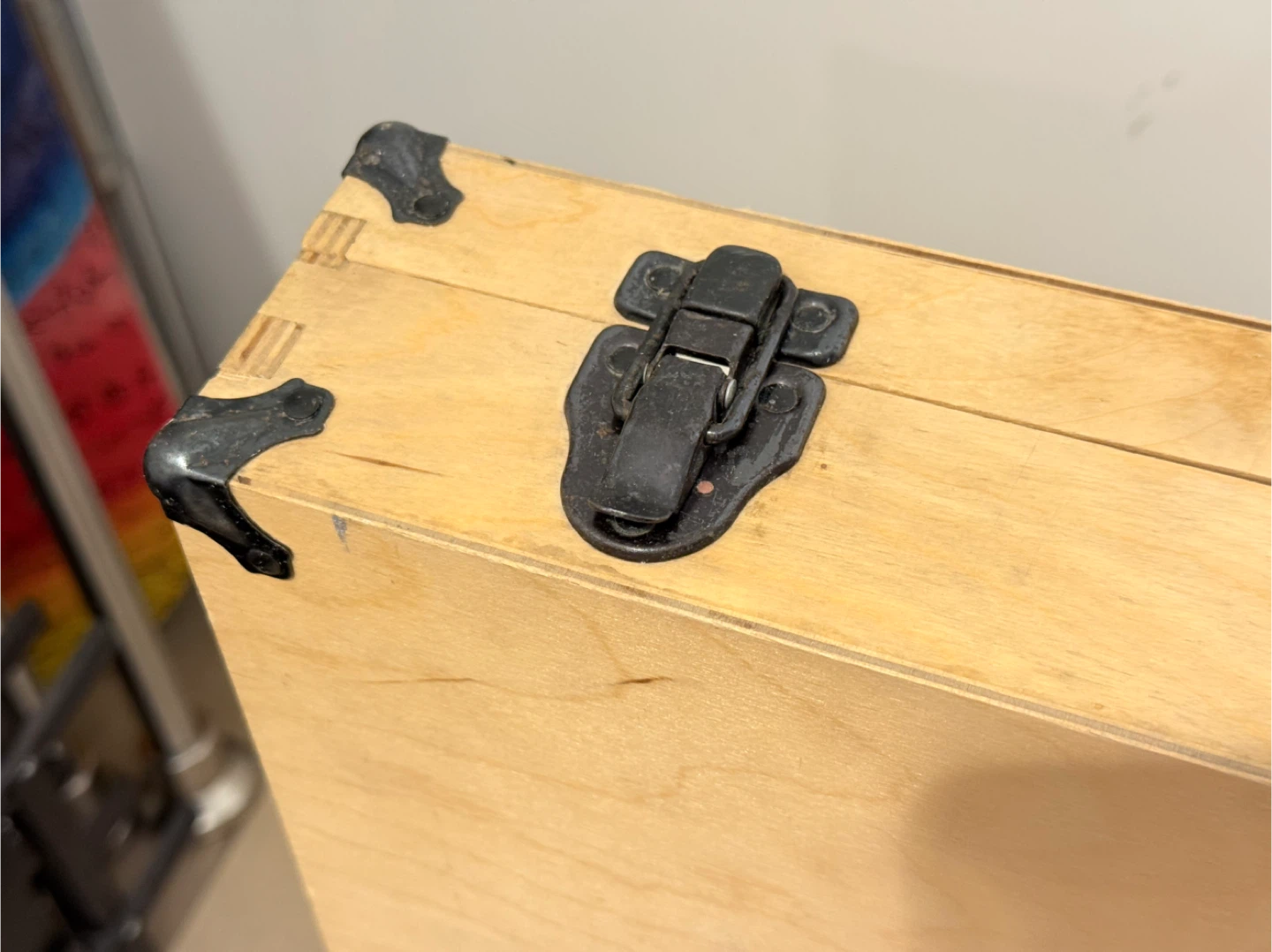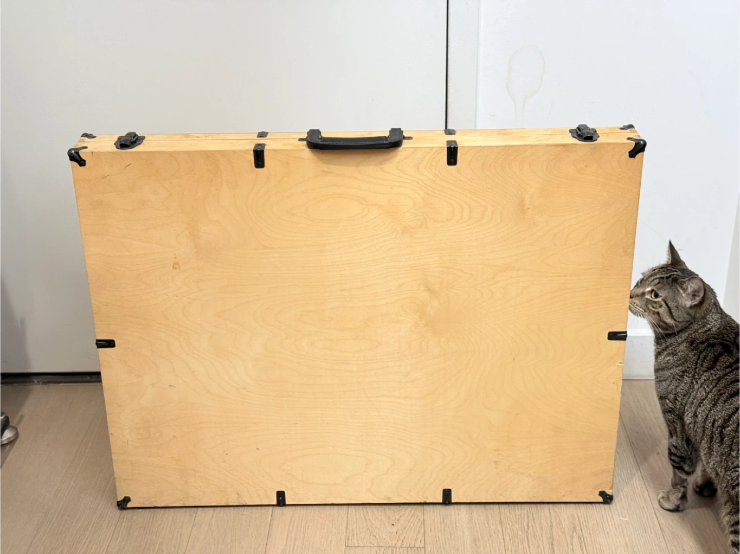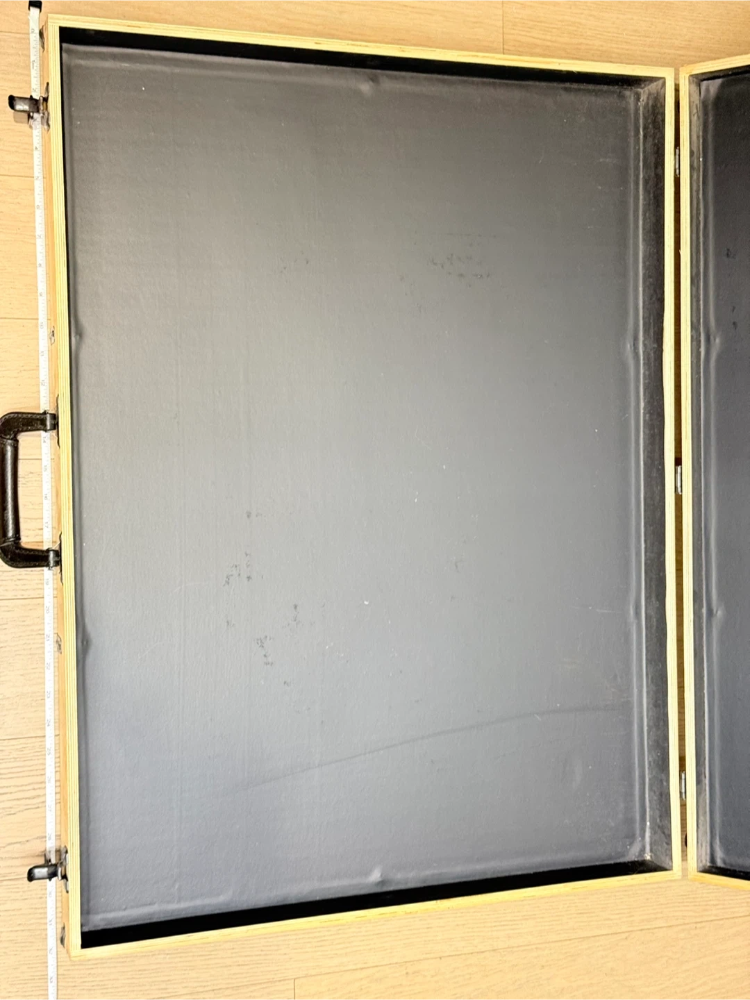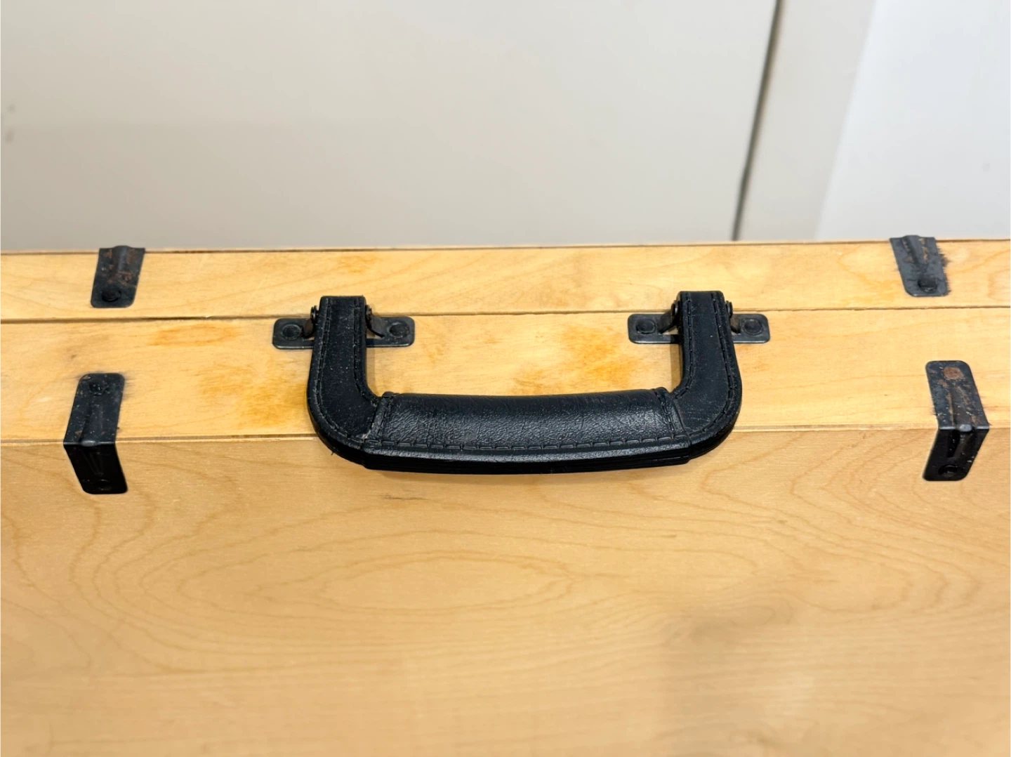 Selling a Vintage wooden art portfolio case. It has a handle and metal clasps for secure closure. Perfect for transporting artwork or documents.