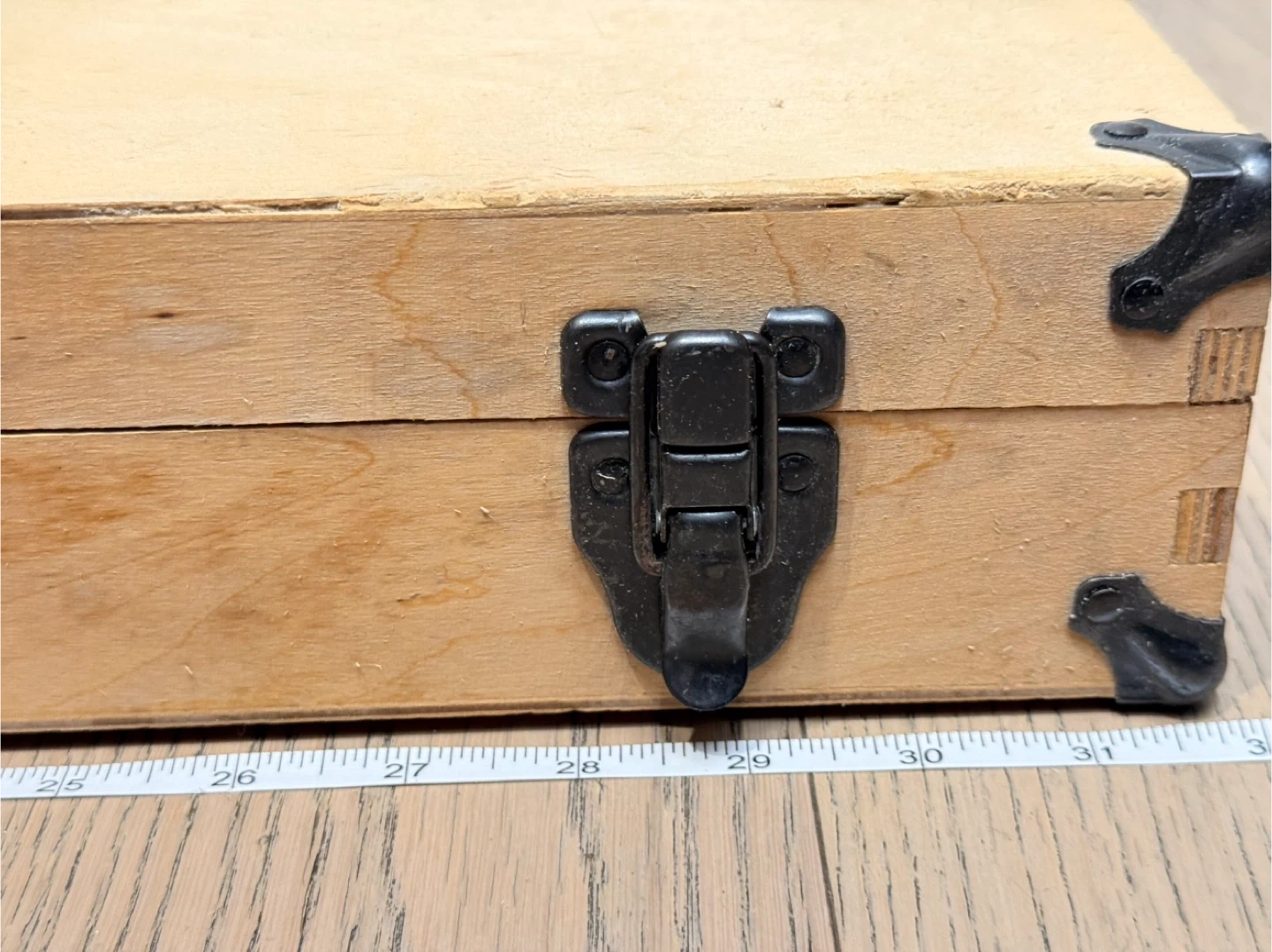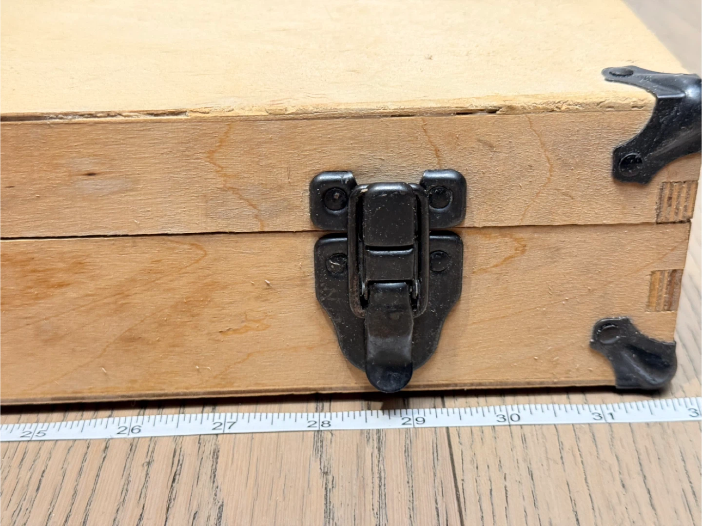 Condition: Have some stains on wood lid (images) metal clasps have some wear (images) but in good condition!