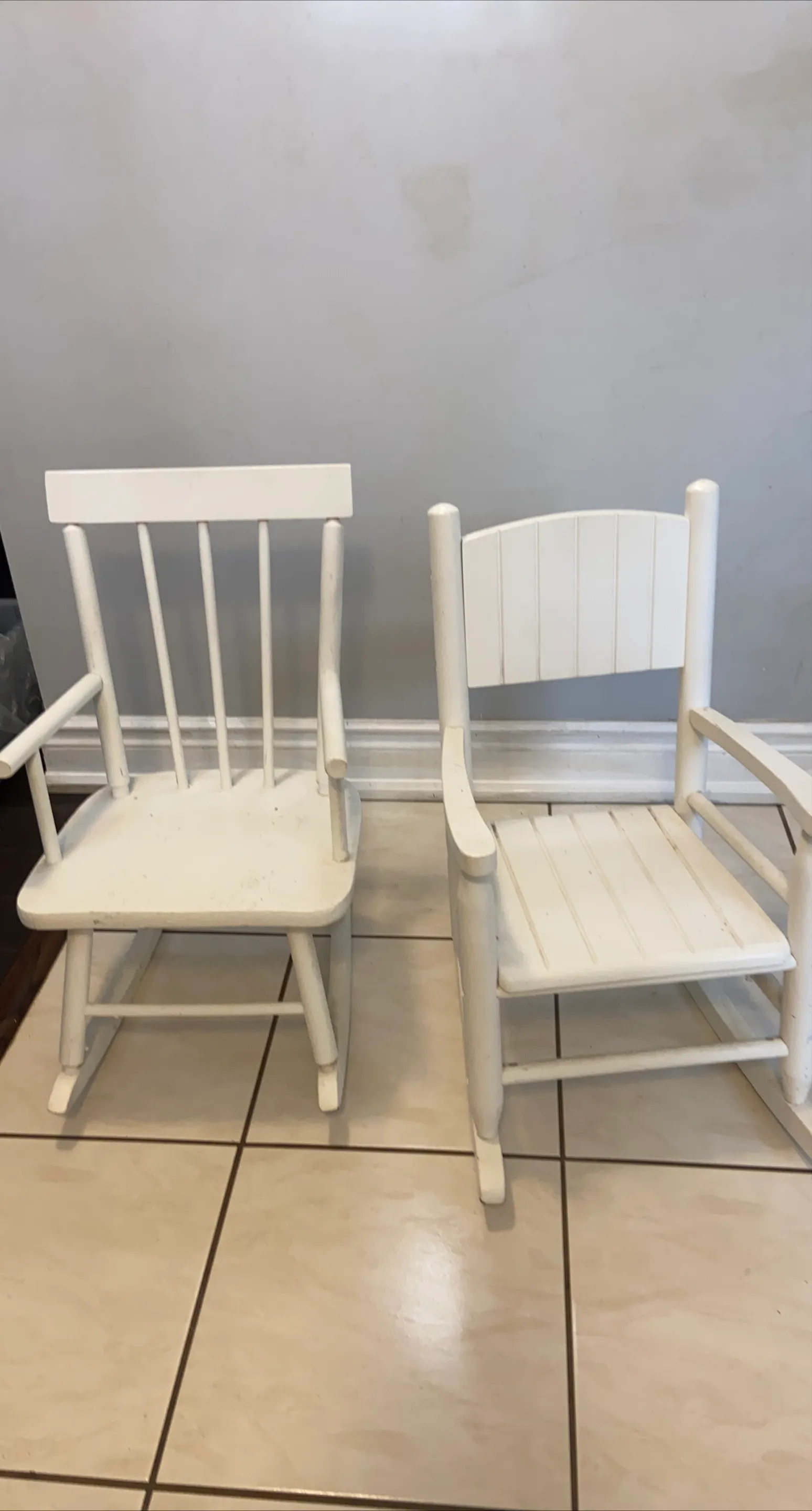 Selling a set of two adorable white wooden rocking chairs for kids! They are in great condition Perfect for a playroom or bedroom