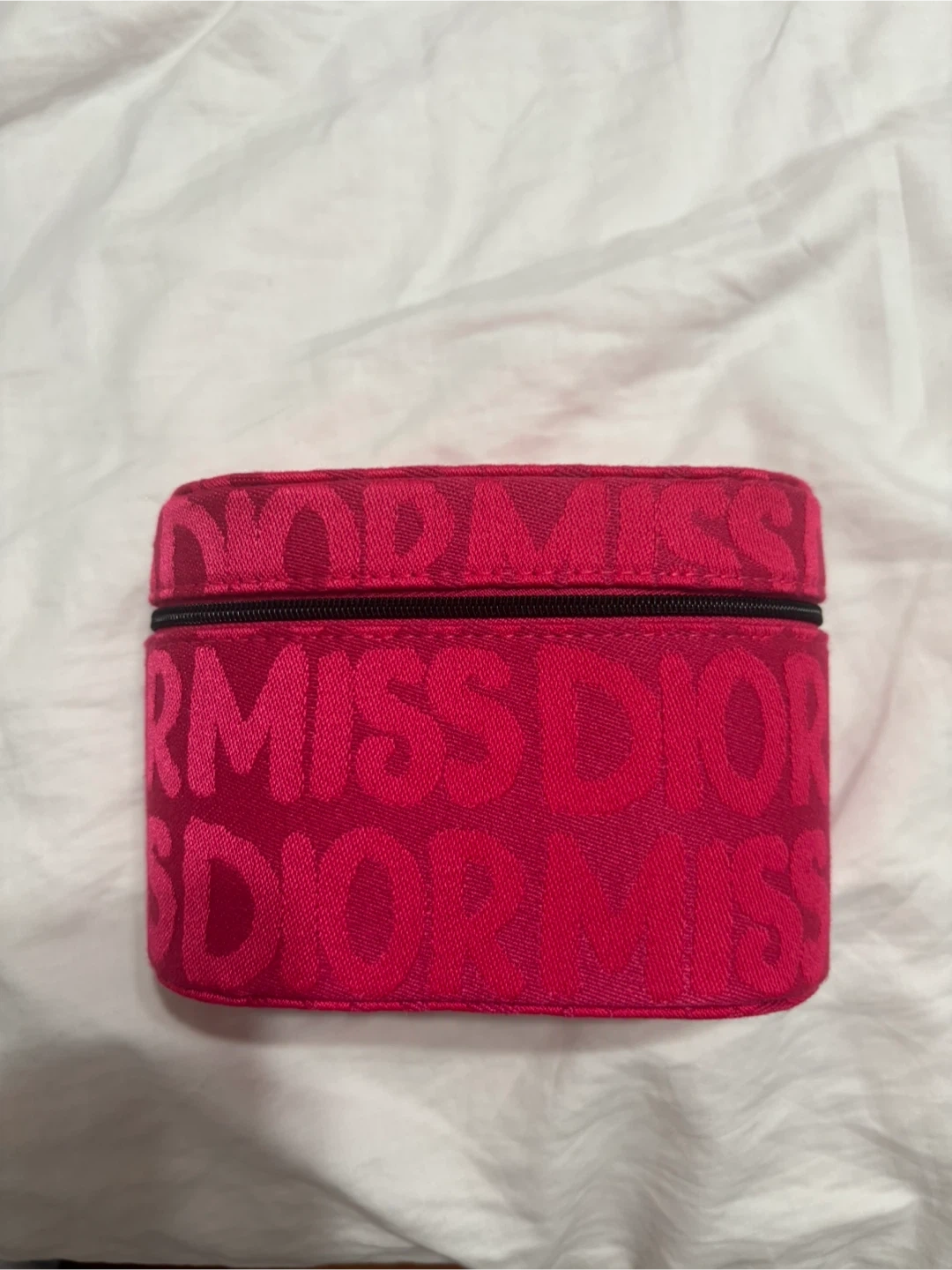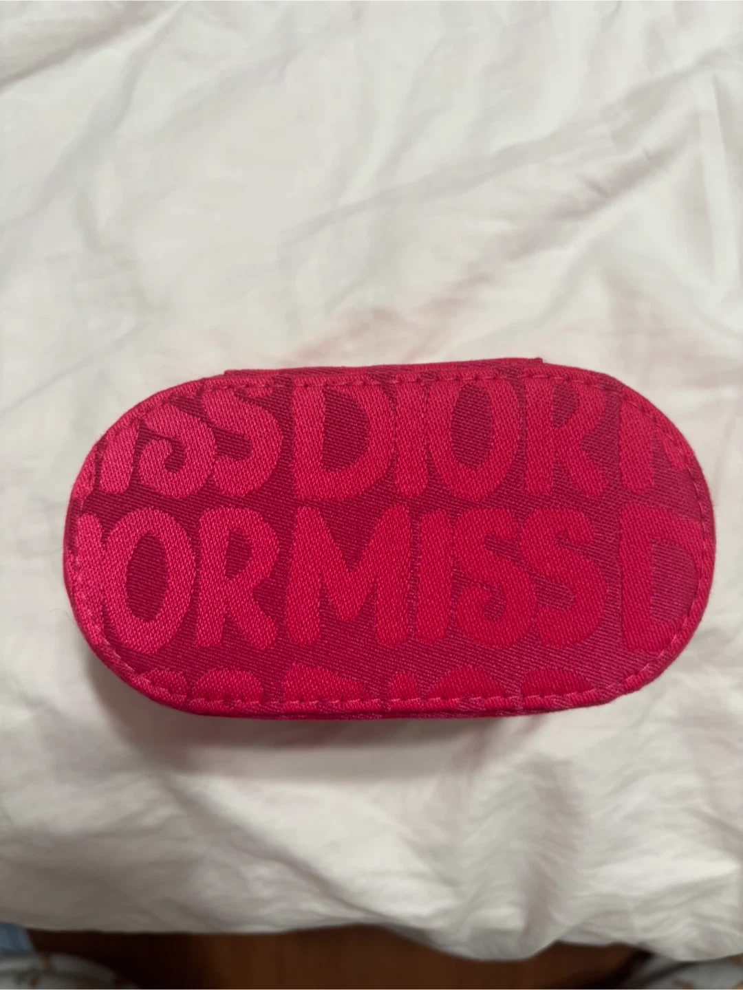 Selling a cute Dior Miss Dior pouch in a vibrant pink colour. It comes with its original box. Perfect for storing your makeup or other small items!