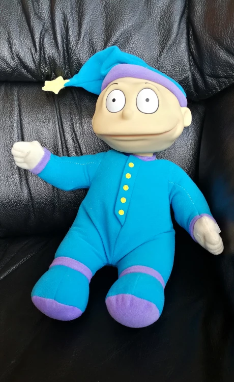 Vintage 1997 Tommy Pickles plush doll in his blue pajamas and sleeping cap, by Mattel Inc.