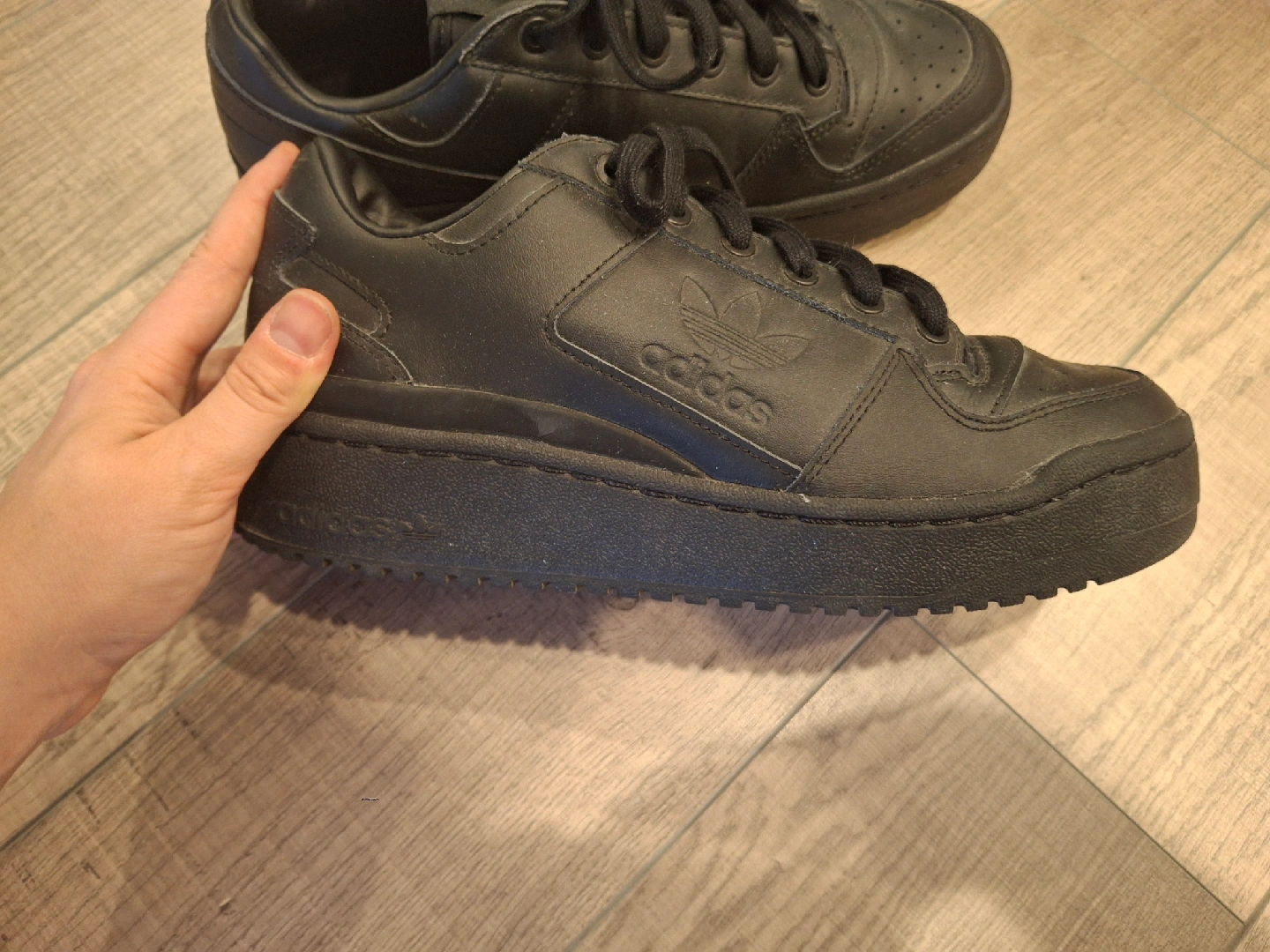 Selling a pair of Adidas Forum Bold W sneakers in black, size 8.5 US. They're in good condition and ready for a new home!