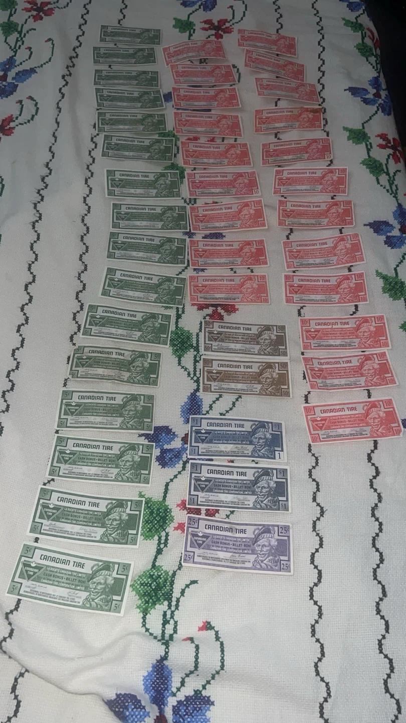 771Selling a collection of Canadian Tire money. Includes various denominations, from 5 cents to $1. Great for collectors or anyone who wants to save a bit on their next Canadian Tire purchase!