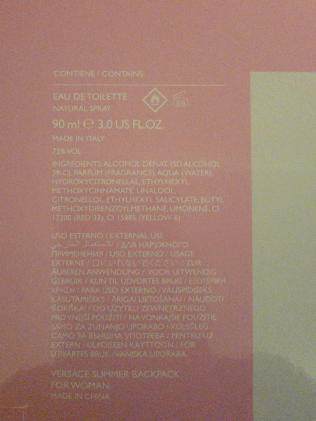 Selling a Versace Summer Backpack with a Bright Crystal perfume. The perfume is 90ml Eau de Toilette Natural Spray. Made in Italy