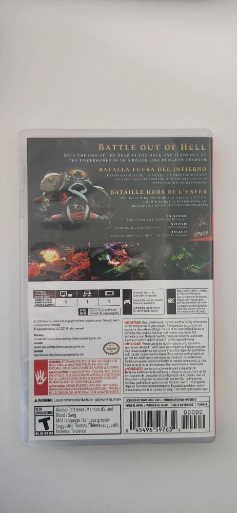 895Selling a copy of Hades for the Nintendo Switch! It's a rogue-like dungeon crawler where you defy the god of the dead. The game is in great condition and ready for a new player to enjoy.
