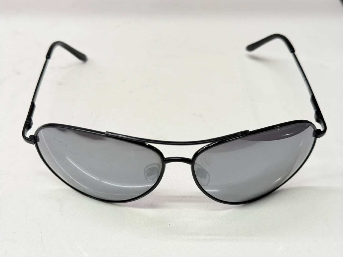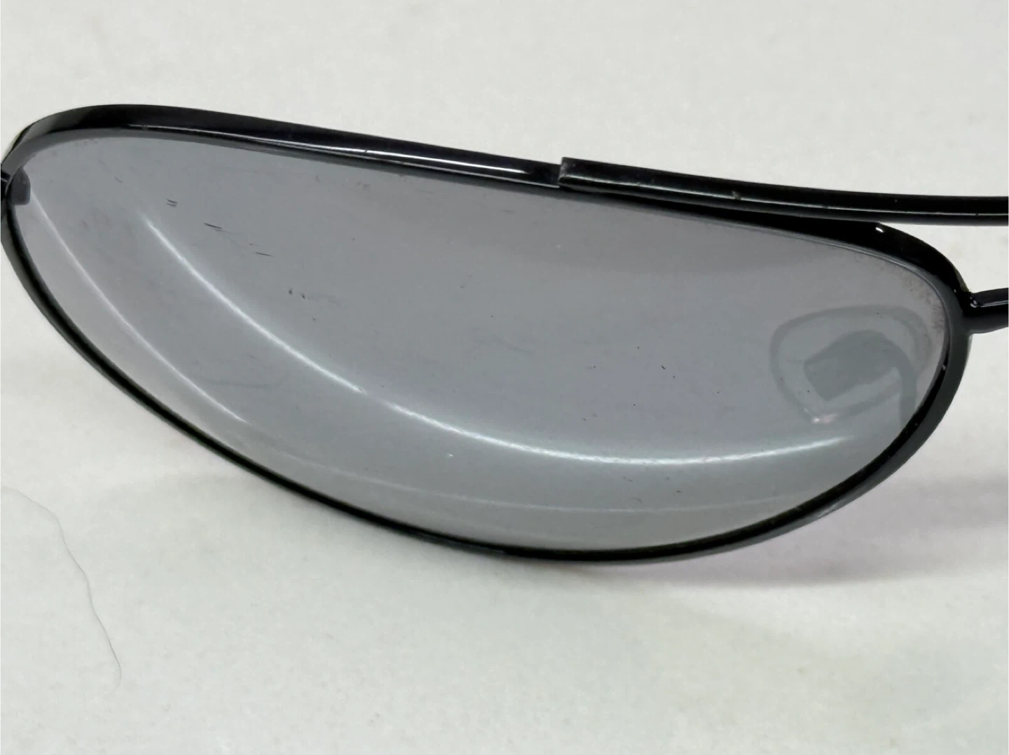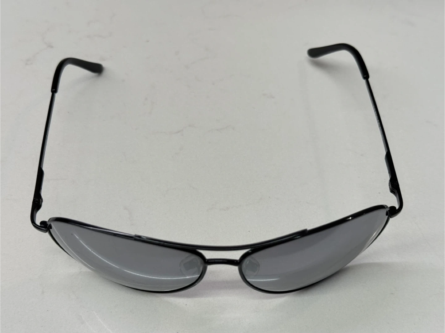 Selling a pair of classic aviator sunglasses with a black frame. They're in great condition except for the scratches at the lenses… not too bad but discontinued because of it!