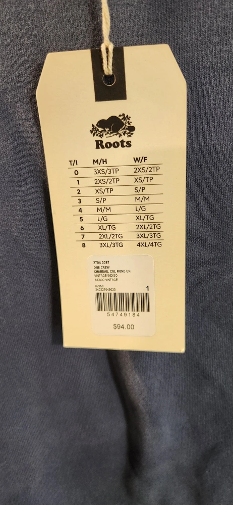 I'm selling a Roots One Crew sweatshirt in a lovely vintage indigo colour! It's a size medium and looks great. Originally bought for $94, it's brand new with tags and ready for a new home.