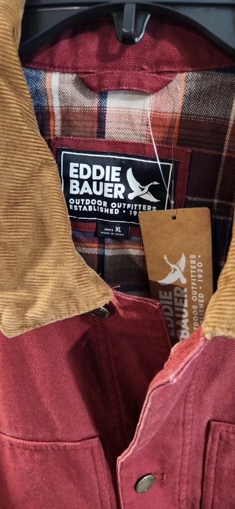 This is an Eddie Bauer jacket in brand new , ready to keep you warm and stylish! It features a corduroy collar and a durable outer shell.