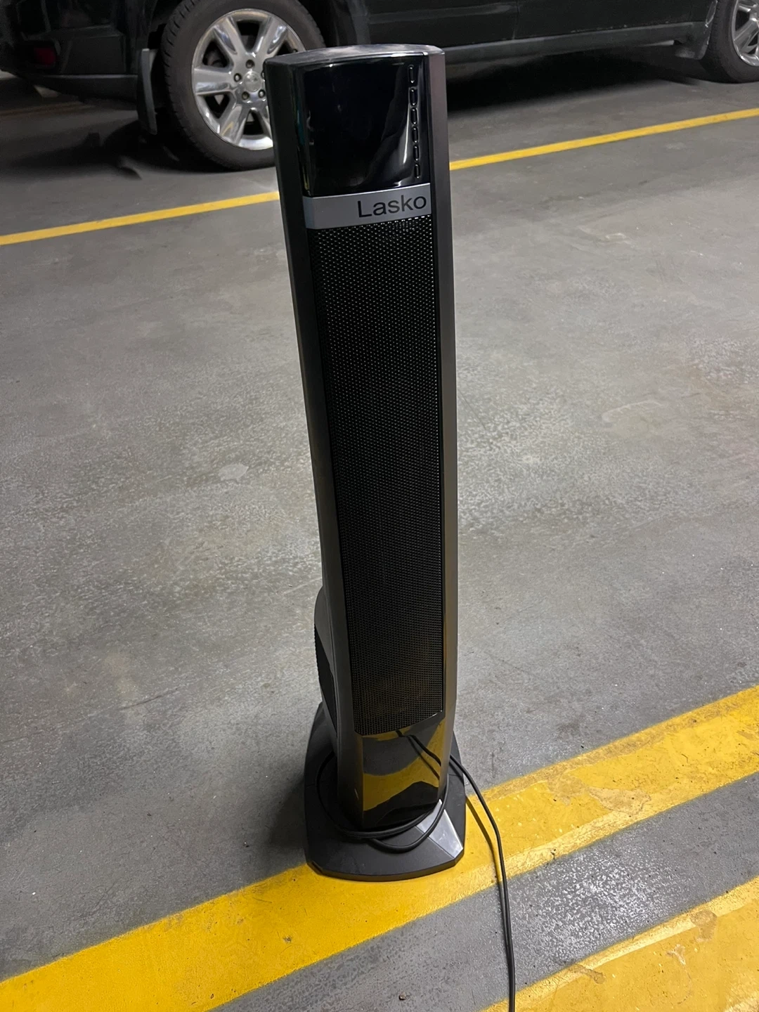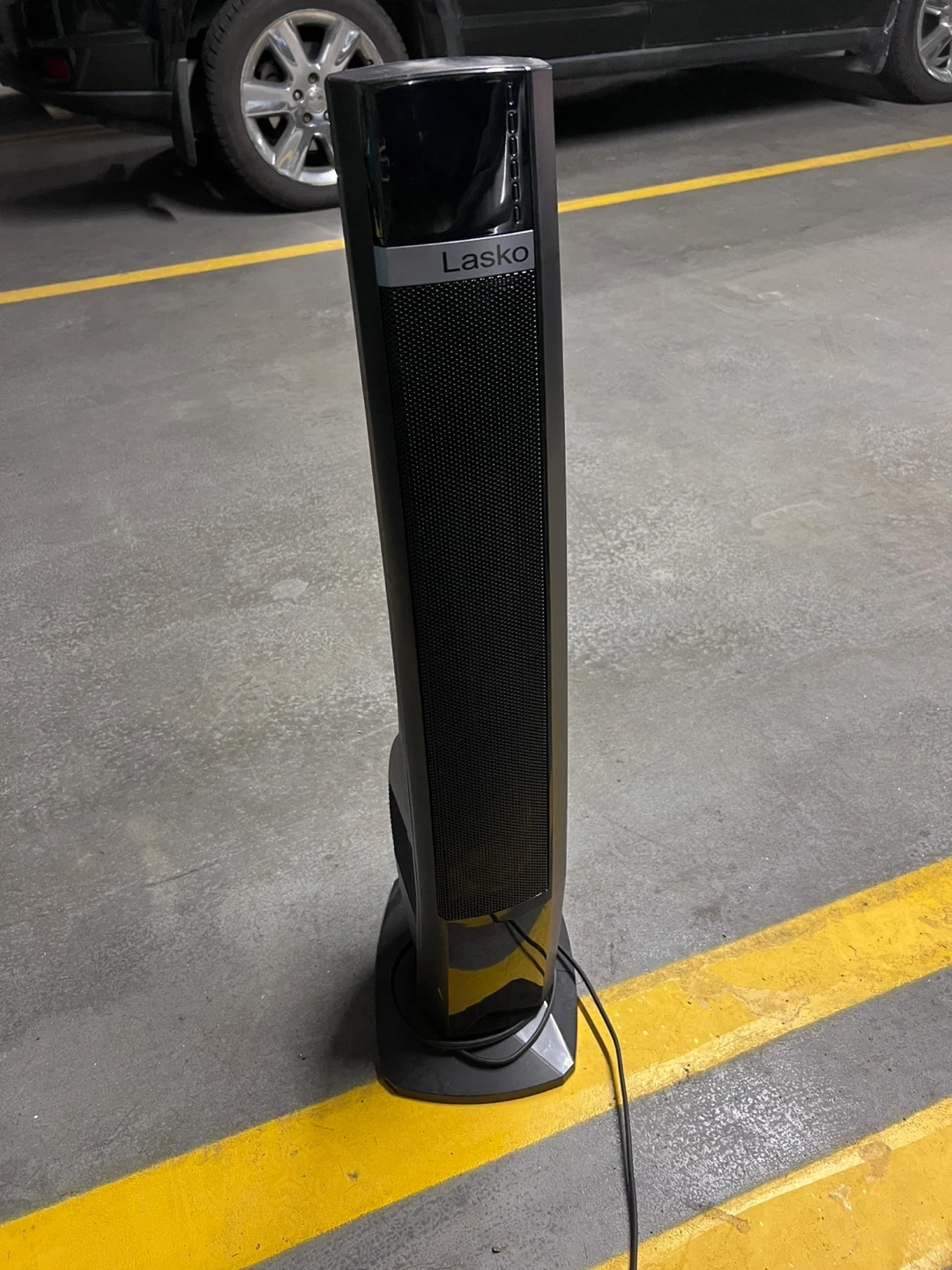 Selling a Lasko tower fan in black! It's in great shape and ready to keep you heated . Perfect for any room in the house