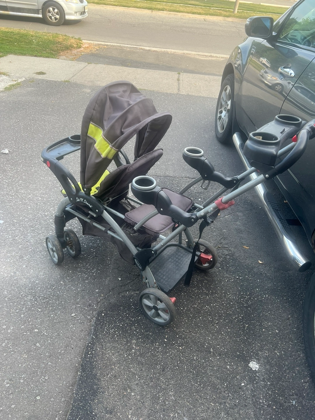 Selling a Baby Trend Sit N Stand double stroller. It's in good condition and ready for your little ones! Great for families with a toddler and a baby or two toddlers