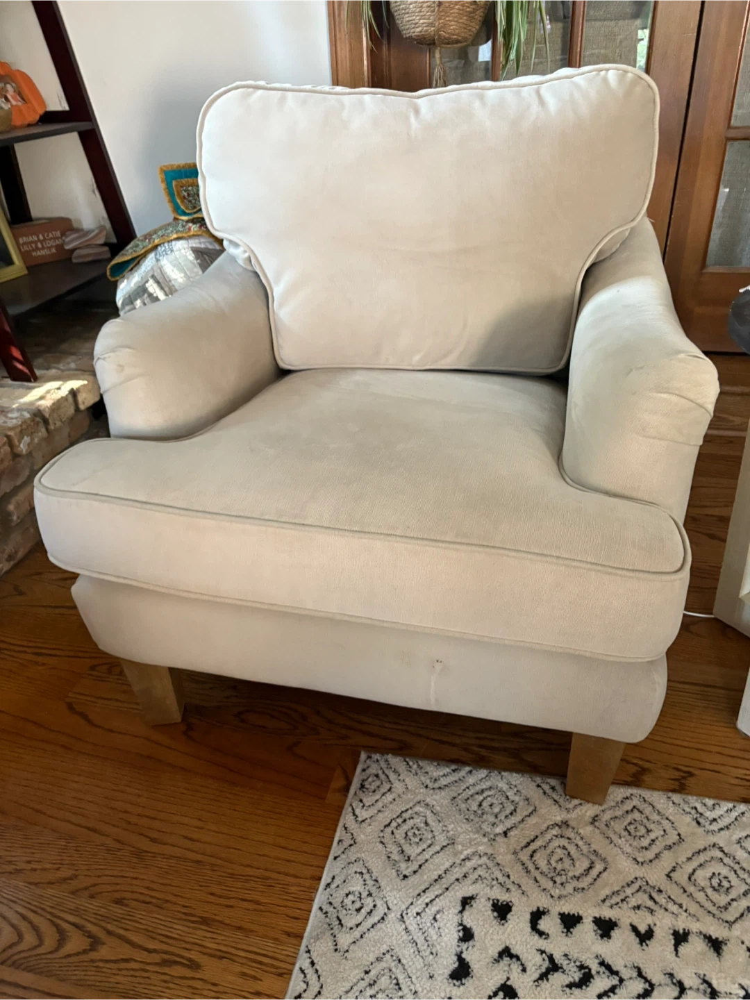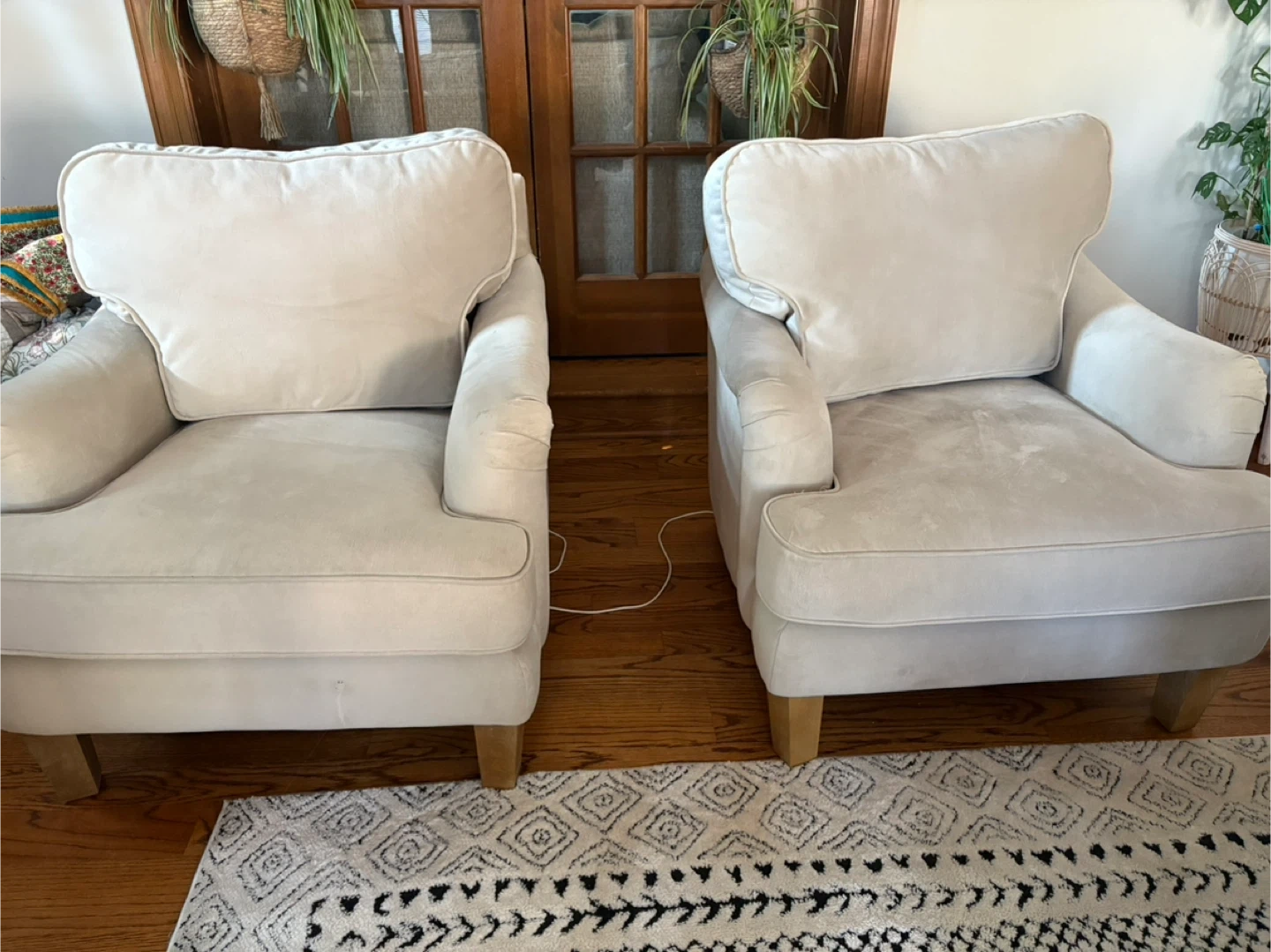 Selling 2 comfy armchair s that's in great shape! It's a neutral color, so it will fit with any decor. Perfect for a reading nook or living room. It is made of a soft, durable material. Ready for a new home!