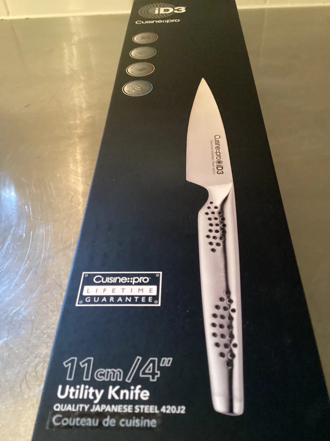 Selling a brand new Cuisine::pro iD3 11cm/4" Utility Knife! This quality Japanese steel 420J2 knife comes in its original box and has a lifetime guarantee from Cuisine::pro