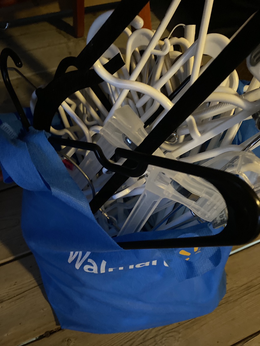 A mixed lot of clothes hangers in black and white. They’re in great condition - they just don’t all match and we finally got matching ones