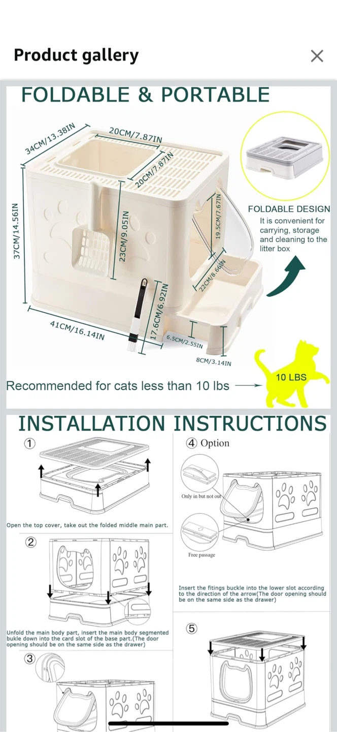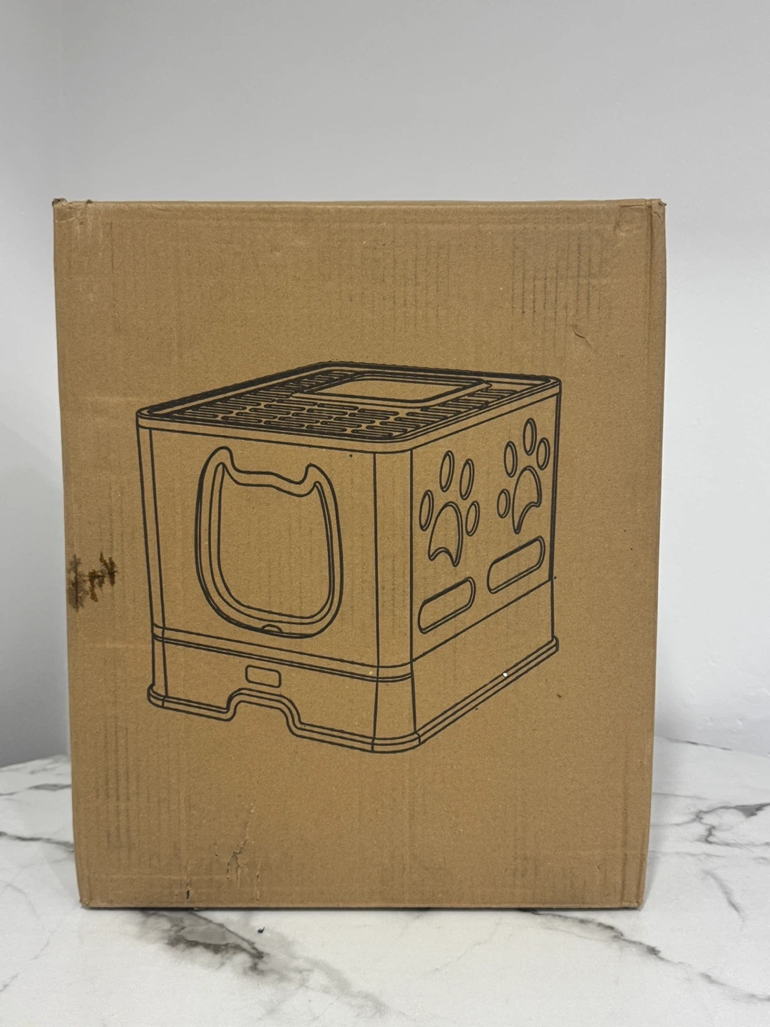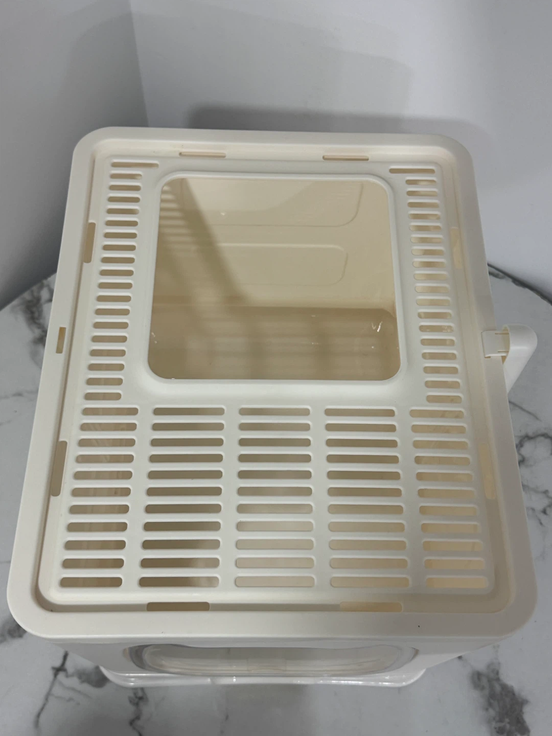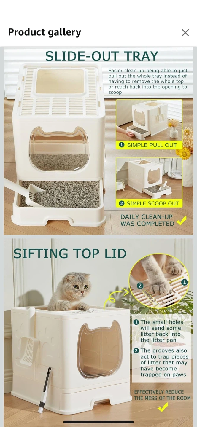 This litter box has a cute cat head shape front door, which is more suitable for kitty as his a private cute bathroom! It's designed to fit into room corners much better. Comes with a scoop.