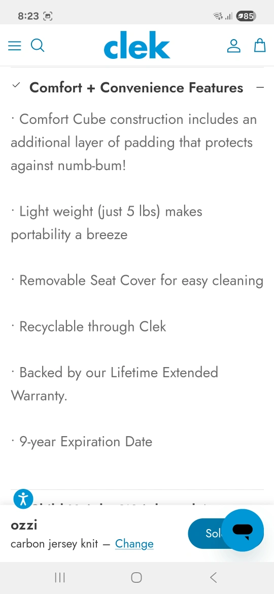 Clek Ozzi Booster Seat - Black with locking mechanism