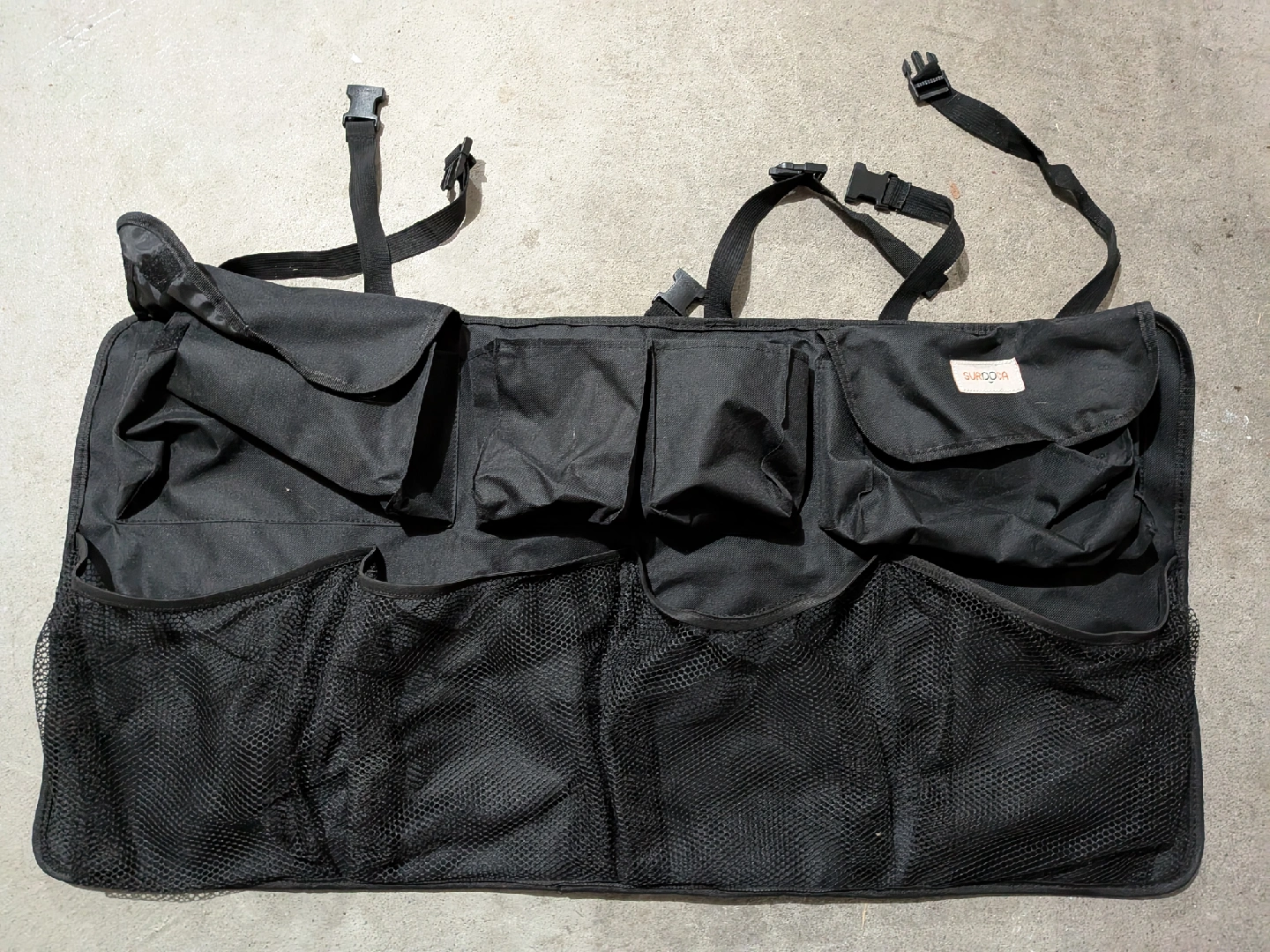 Keep your car tidy with this handy Suoggya trunk organizer! It's black and has lots of pockets and mesh compartments for all your essentials. Great for keeping things in place while you're on the go