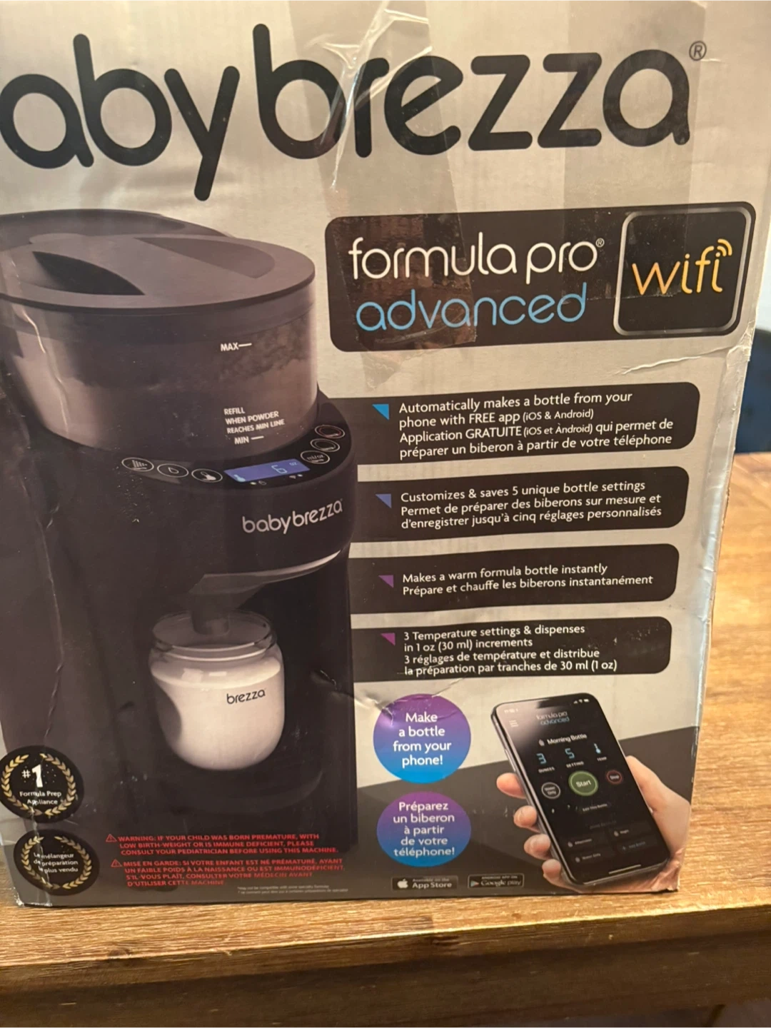 Baby Brezza Formula Pro Advanced WiFi in excellent condition! It automatically makes a warm formula bottle instantly. You can even make a bottle from your phone using the free app! The box is included.