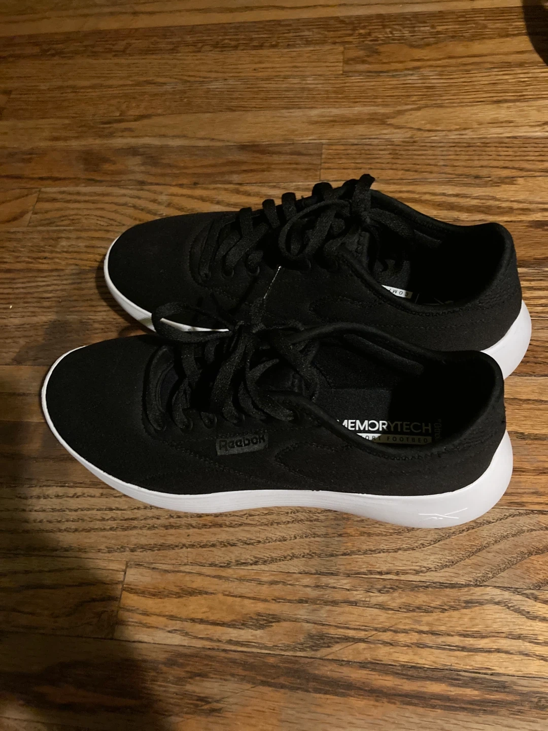 Selling a pair of Reebok sneakers in black! These are a size 8.5 and feature MemoryTech comfort footbed. They are brand new. Size sticker still on bottom of shoes!