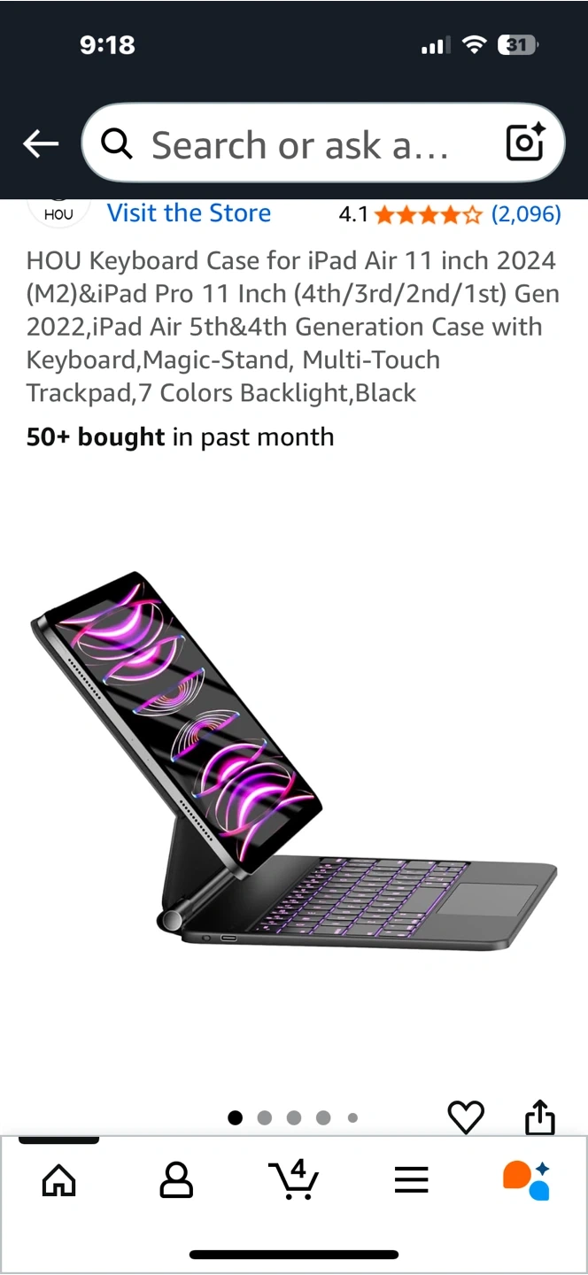 84HOU Keyboard Case for iPad Air 11 inch 2024 (M2)&iPad Pro 11 Inch (4th/3rd/2nd/1st) Gen 2022,iPad Air 5th&4th Generation Case with Keyboard,Magic-Stand, Multi-Touch Trackpad,7 Colors Backlight,Black
