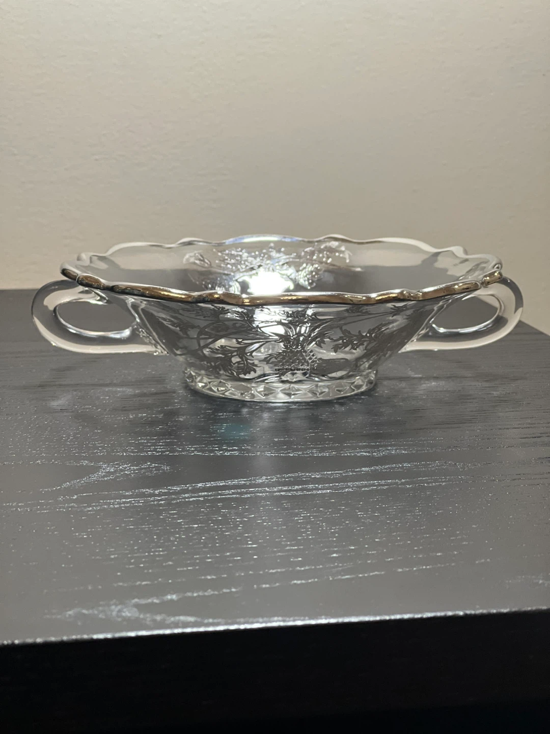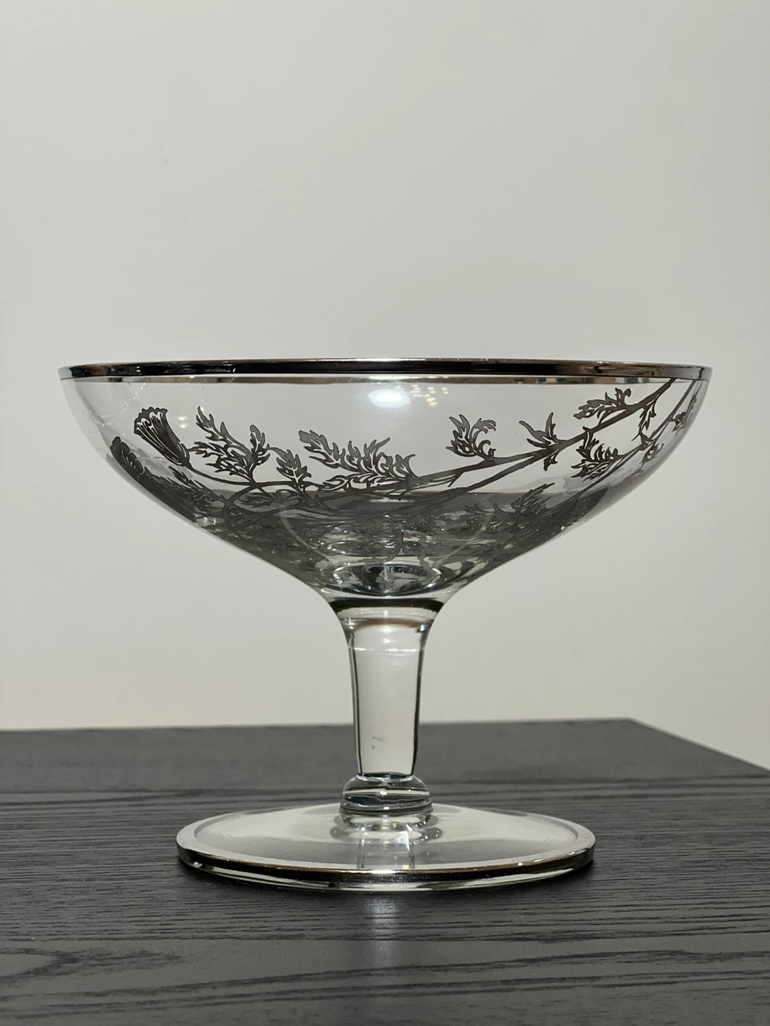 Silver Overlay Technique: The intricate floral and leaf patterns seen on these pieces are created using a technique where silver is electroplated onto the glass, resulting in a distinct, palpable design.