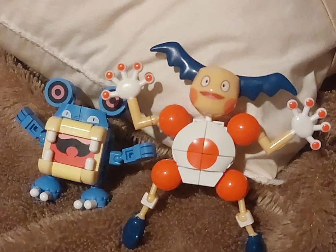 Two cute Pokemon figures made of nanoblocks! One is Mr. Mime and the other is Bruxish. They're in great condition and ready for a new pokemon master