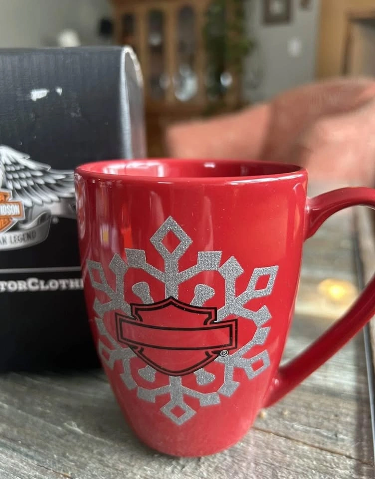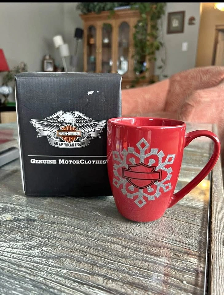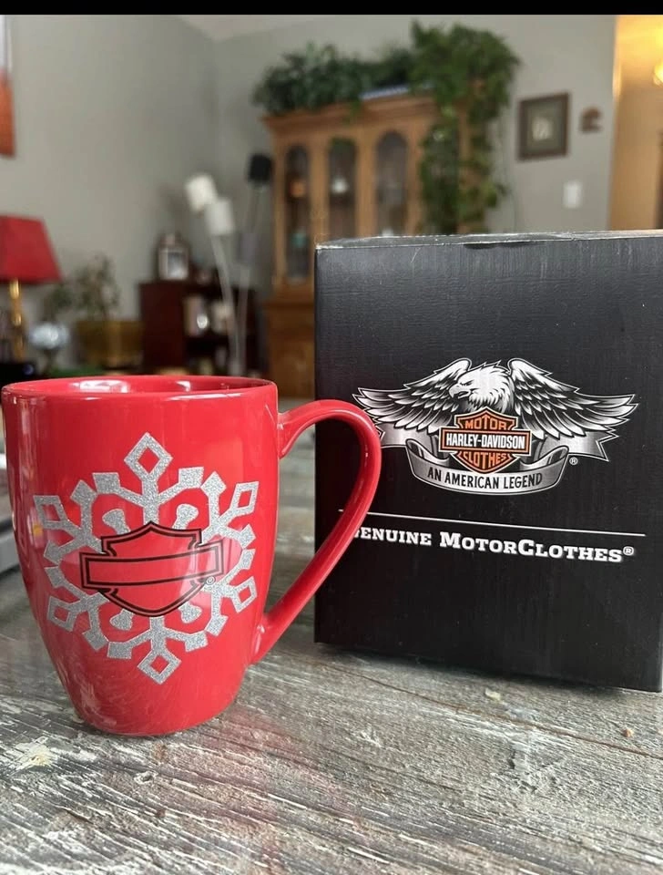 Brand New Mug with Box. Pick up near Southcentre mall, if this ad is up, it is available. This collectible Harley-Davidson coffee mug is a limited edition item from 2012, featuring a festive snowflake design perfect for the winter season. The ceramic mug is a vibrant red color and is sure to make a statement in any collection. Made in Taiwan, this mug is of high quality and is in excellent condition, with no modifications made. It's the perfect gift for any Harley-Davidson enthusiast or coffee lover. Don't miss out on the chance to add this rare item to your collection.