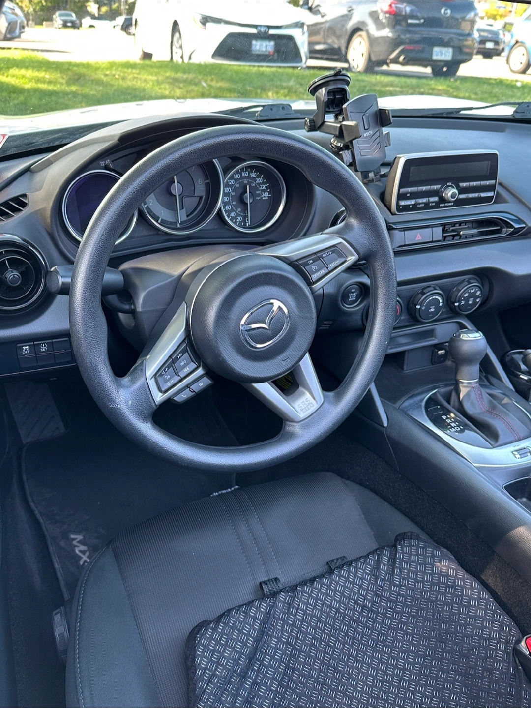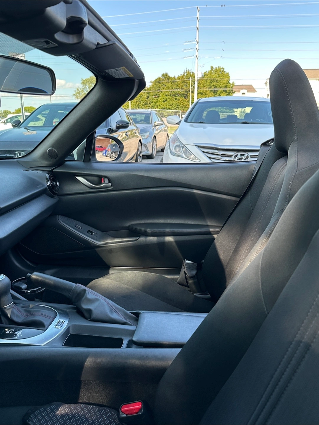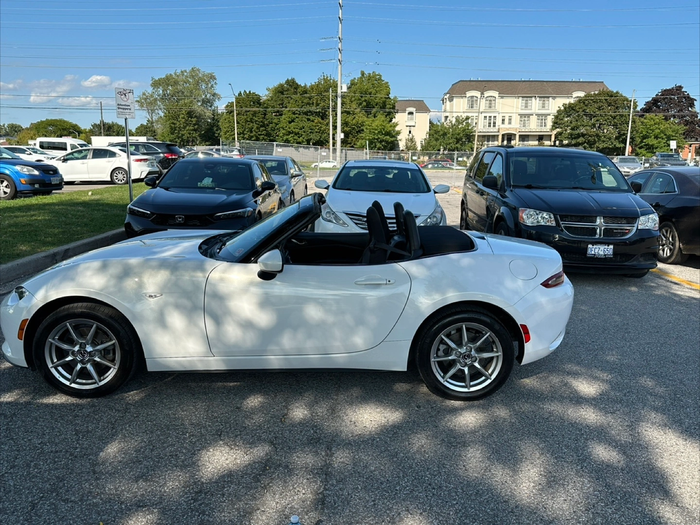 Free coffee with sale of White Mazda MX-5 Miata convertible. 59’000km onvertible with black interior and leather accents,