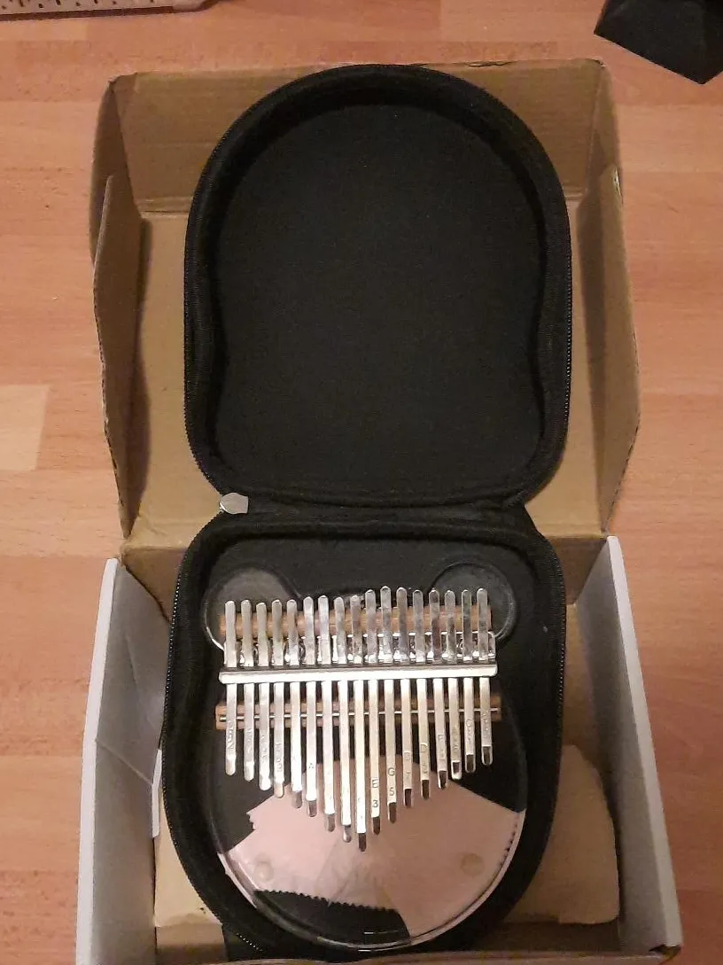 Selling a kalimba, also known as a thumb piano! It comes with a handy carrying case to keep it safe and sound. Perfect for anyone looking to explore a new instrument or add a unique sound to their music collection