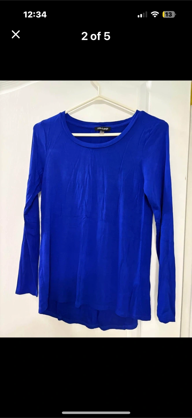 Selling a lovely Cable & Gauge long sleeve top in a vibrant blue! It's a size small (S/P) and in great condition. Perfect for layering or wearing on its own. The fabric feels nice and soft!