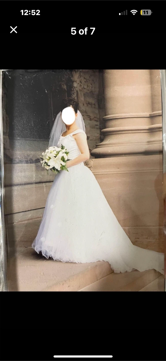 Vintage wedding gown with veil Alfred Sung designer Princess ballgown white size small. Originally purchased from Hudson’s Bay Bridal downtown Toronto.