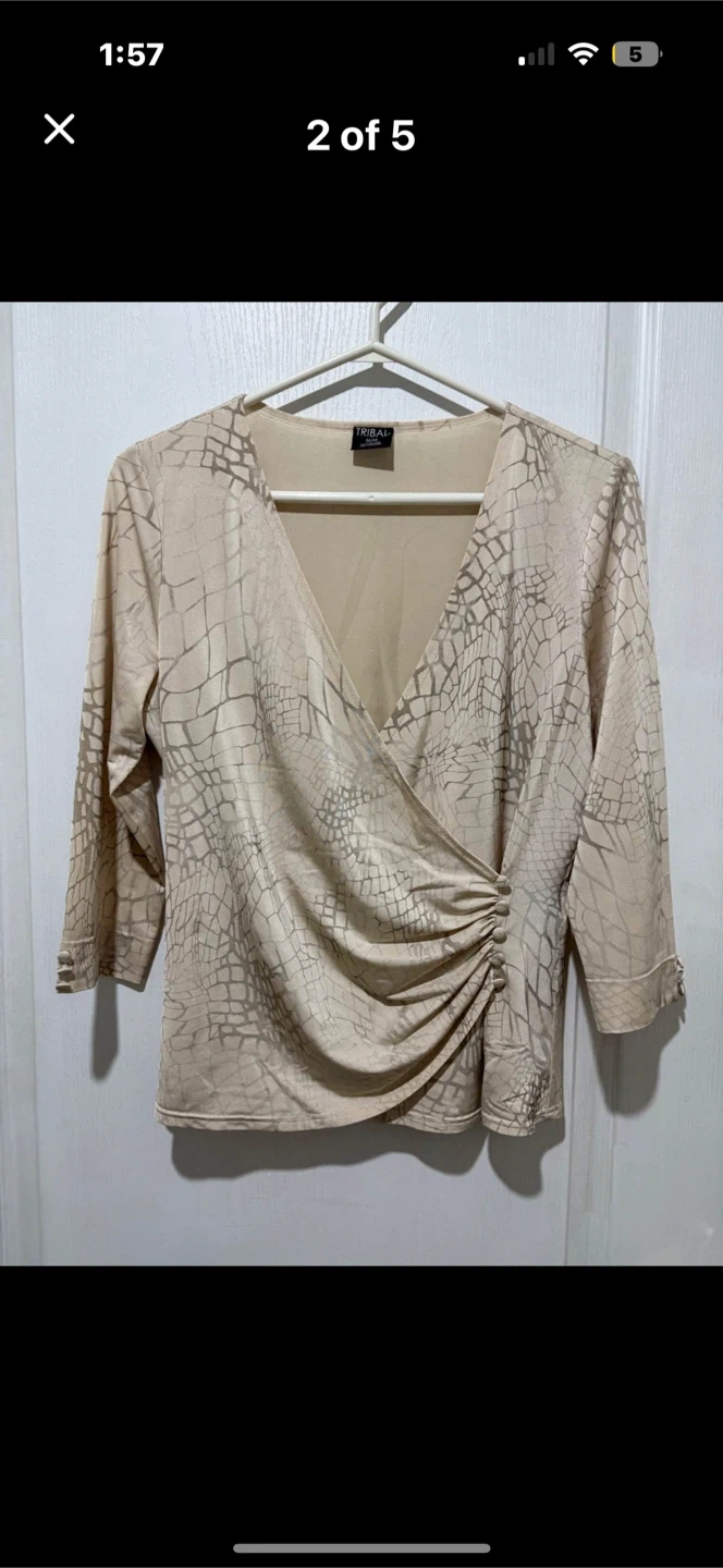 Tribal Beige Wrap Blouse - Size M