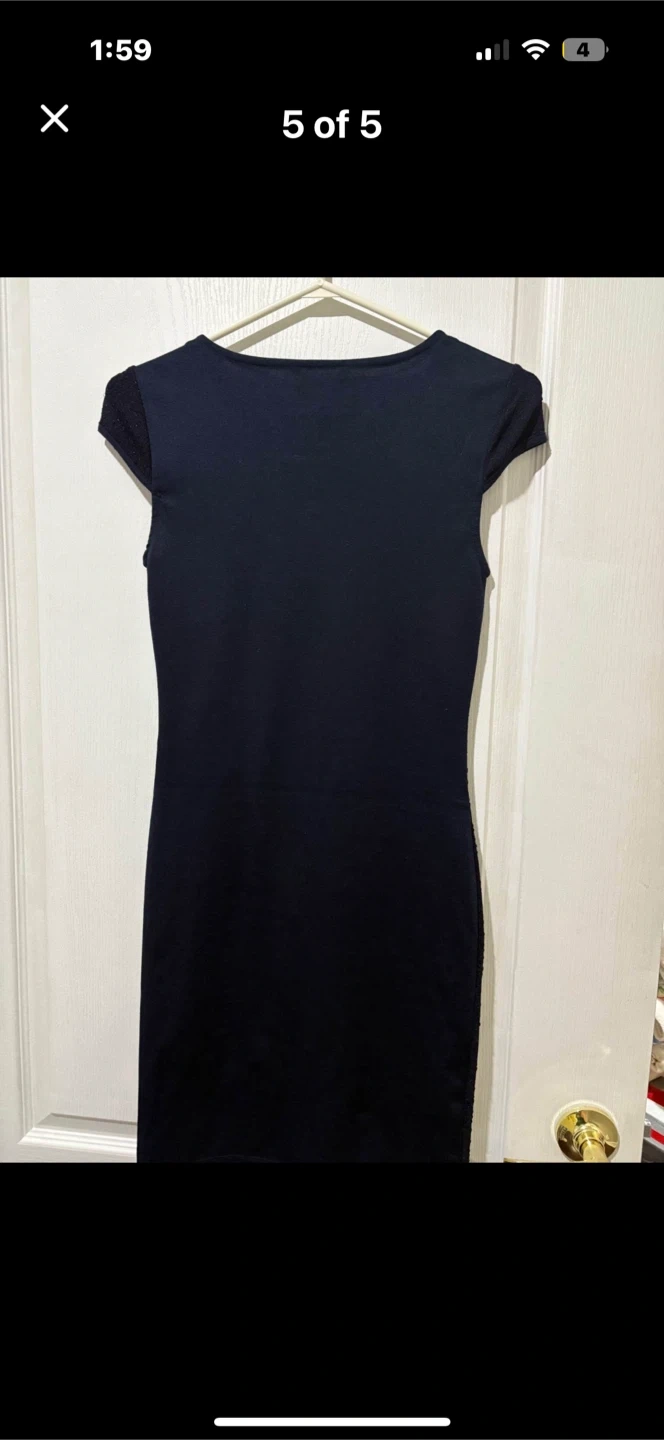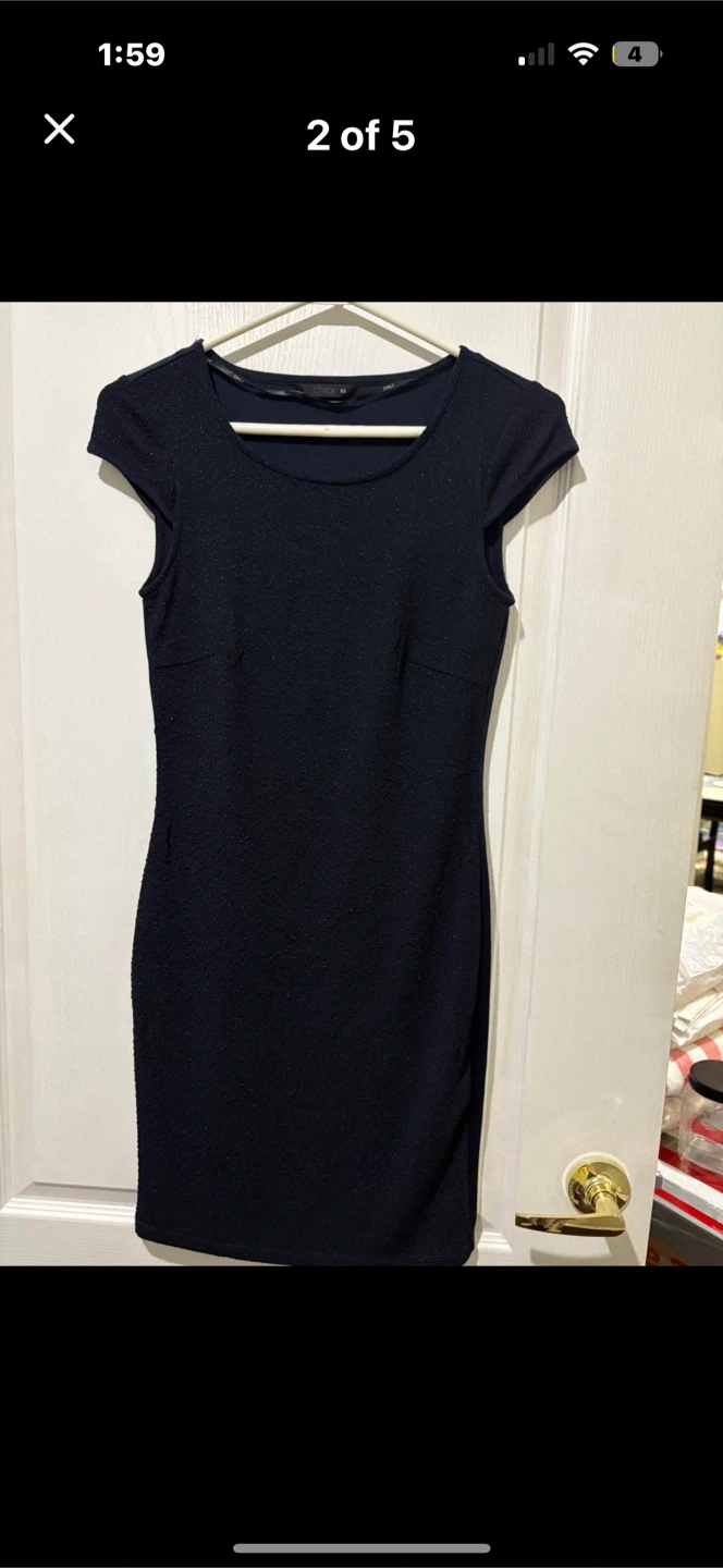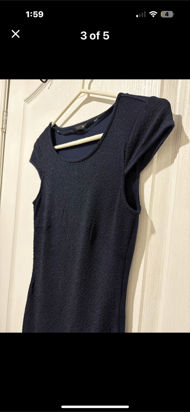 Selling a cute dark blue dress from ONLY! It's a size XS and in great condition. Perfect for a night out or a special occasion. The material has a subtle texture that adds a bit of flair