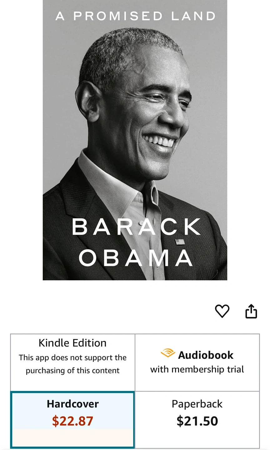 Selling a hardcover copy of "A Promised Land" by Barack Obama. It's in great condition and ready for a new reader!