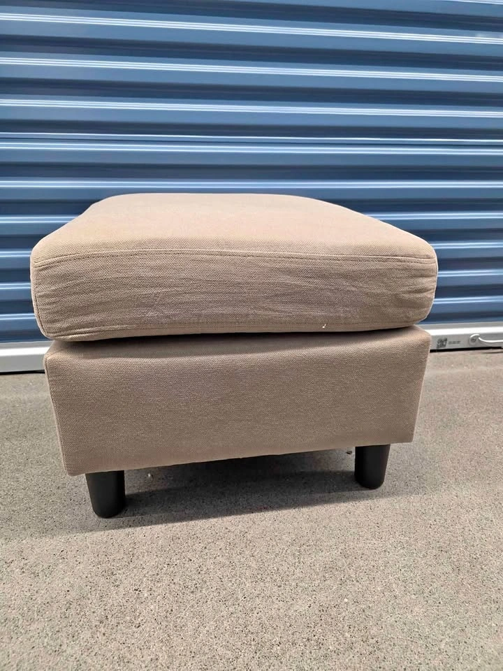 Comfortable and versatile ottoman with neutral beige fabric and sturdy black legs. Perfect as a footrest, extra seating, or small accent table when paired with a tray. Neutral Fabric Upholstery – blends easily with any décor Compact & Functional – use as footrest, extra seating, or side table Sturdy Build – solid frame with supportive cushion Easy to Move – lightweight but durable Brand New – pulled from a liquidation pallet