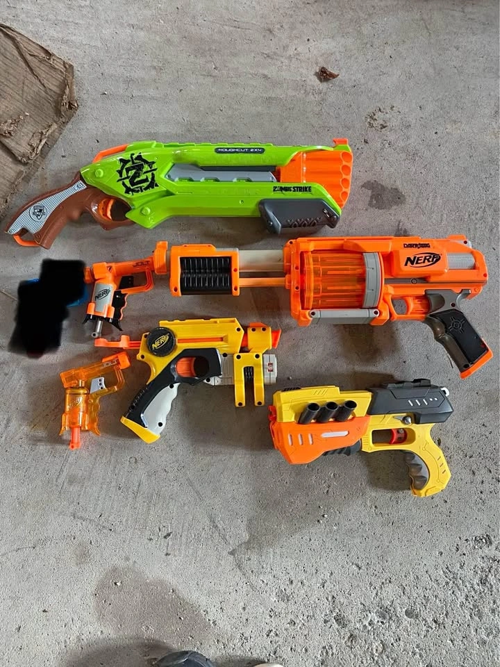 Selling 6 Nerf gun toys, they are all in great condition and working. I don’t have any of the darts, darts are all interchangeable, so you can use the ones you currently have or just purchase new ones. - zombie strike rough cut 2x4 - Fury Fire Pump Action Revolver Nerf Gun - Orange Team Dart Tag - 10 Dart Barrel - N strike maverick - Nerf Nite Finder Blaster Pistol Laser Light - NERF N-STRIKE ELITE JOLT ORANGE BLASTER Fortnite rocket