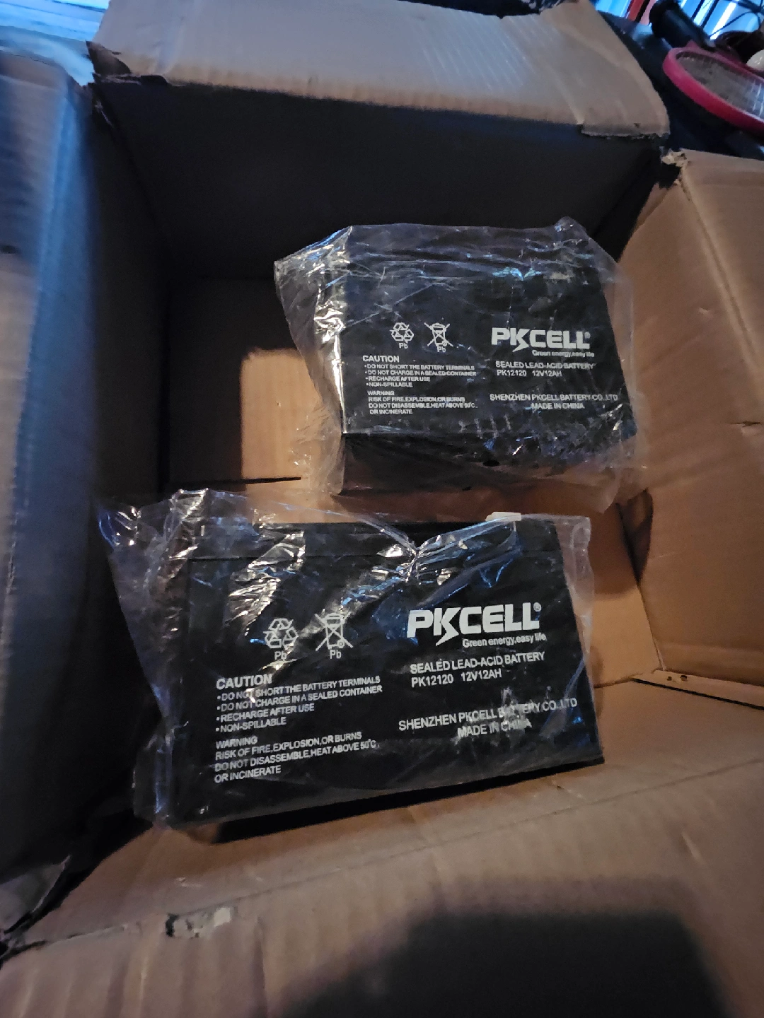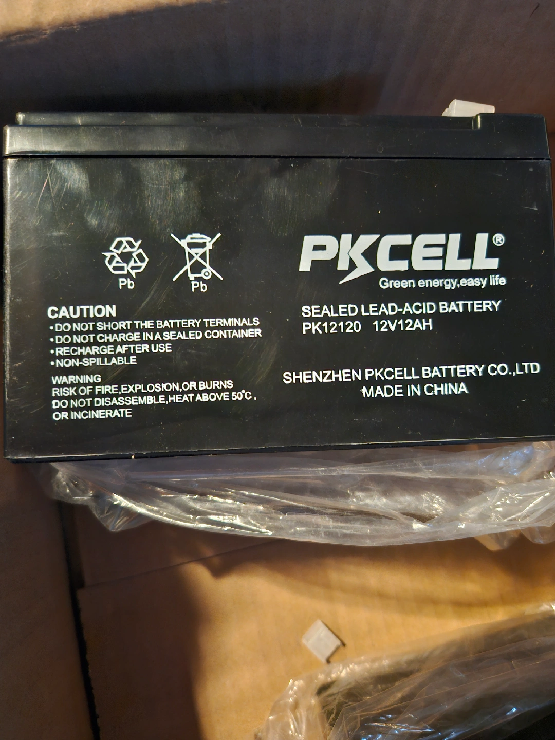 Selling two brand new PKCELL sealed lead-acid batteries! These are model PK12120, 12V 12AH.