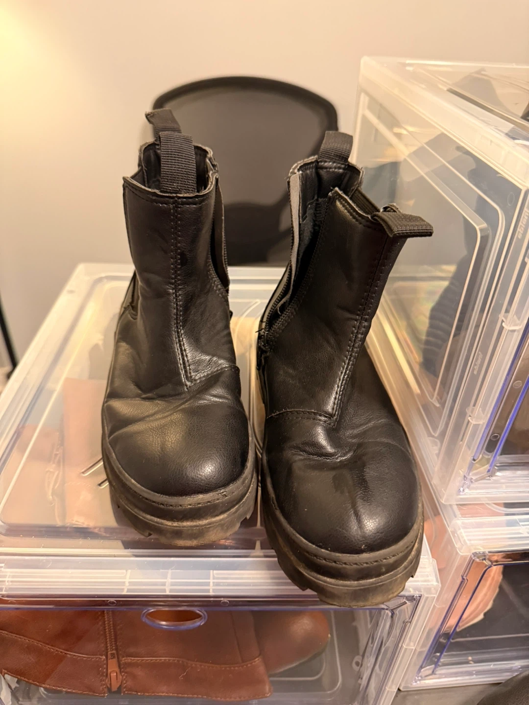 Selling a pair of black ankle boots in They show some signs of wear, but still have lots of life left in them. Perfect for everyday wear! Used