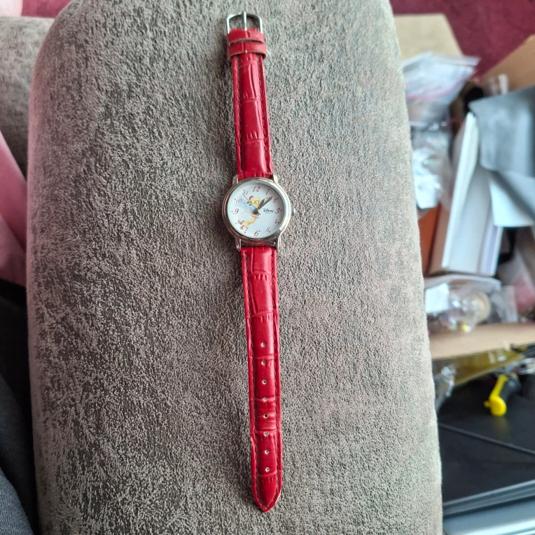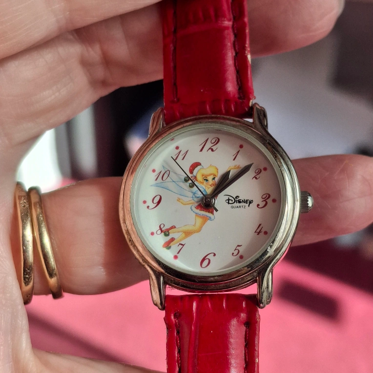 Selling a vintage Disney Tinkerbell watch! It has a red band and a Tinkerbell design on the face. It's from the Walt Disney World Special Edition Collector's Series
