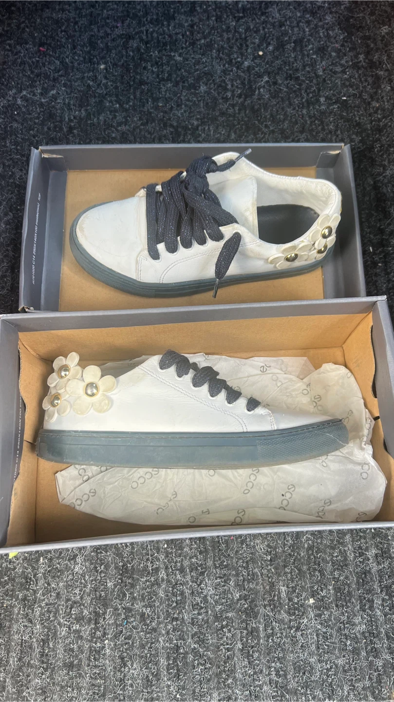 Selling a pair of Ecco Biom Trail Kids sneakers in size 10-10.5 US. These white sneakers are in good condition and come with the original box. Perfect for your little one's adventures!