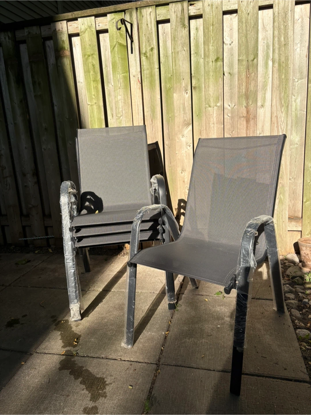 Selling a set of four outdoor patio chairs. They're in great condition and ready to be enjoyed on your deck or patio. Perfect for those summer evenings!