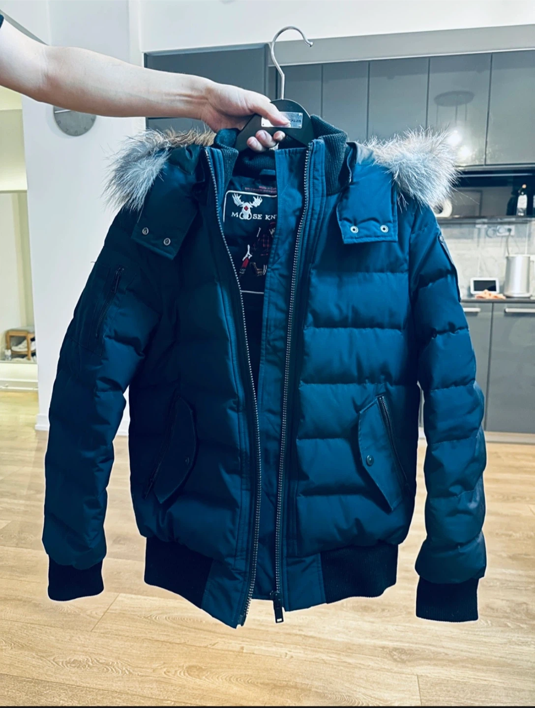 Worn around 3 times, professionally dry cleaned, selling because there are too many jackets at home. Authentic, women’s size M, frosted fur with detachable hood, navy, no bag, has e-invoice. Serious buyers only. Pick up in North York.
