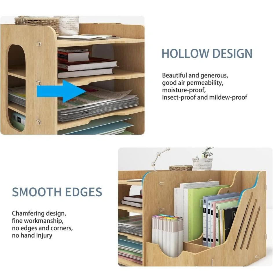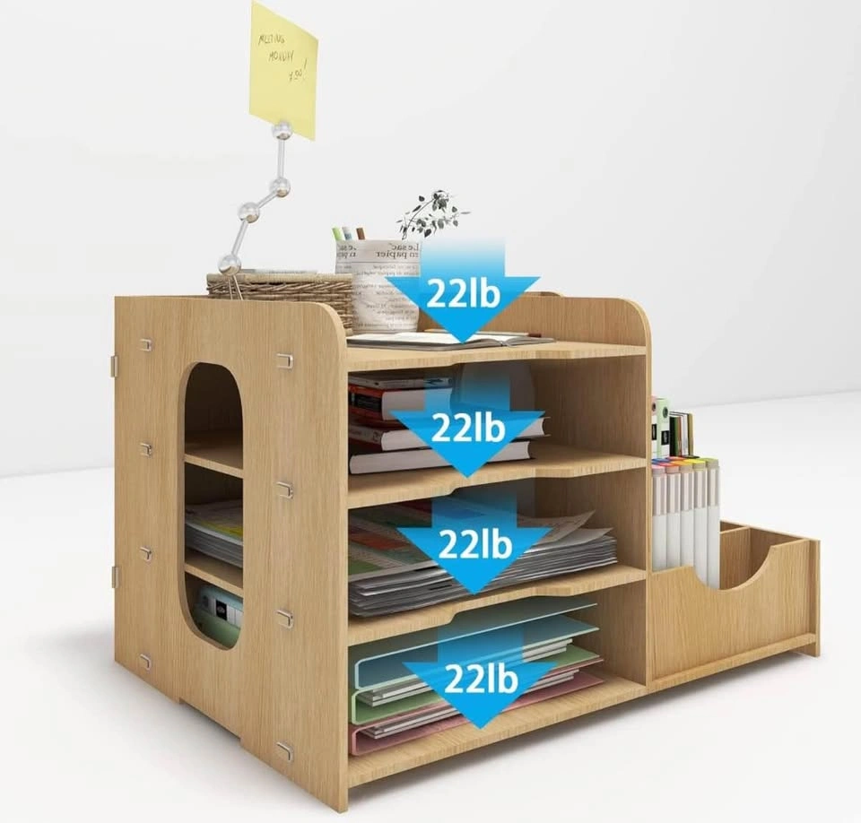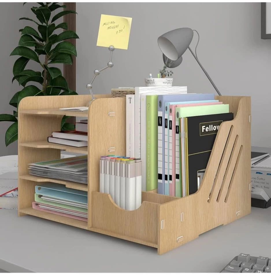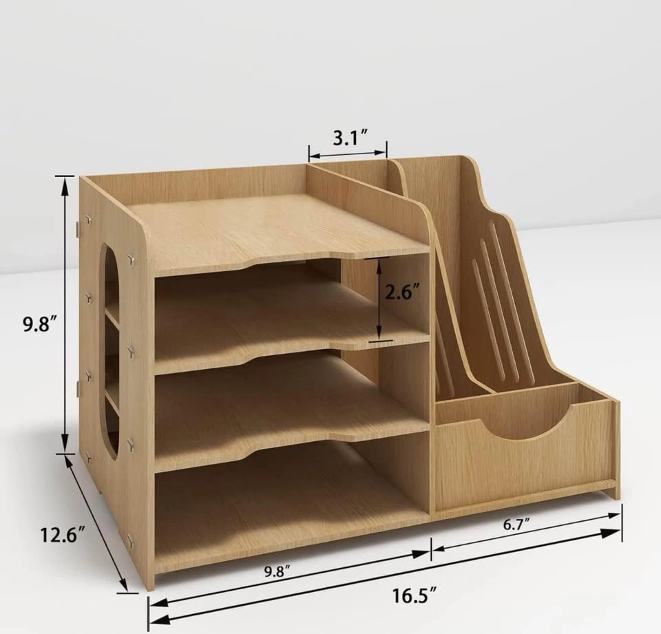 PUNCIA 4-Tier office wood desktop organizer for letter A4 paper. Includes vertical and horizontal file holder, supplies storage box, mail sorter for desk tabletop binder folder letter trays. Pick up in Mississauga near Square One mall.