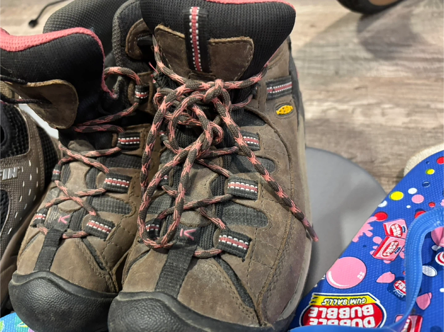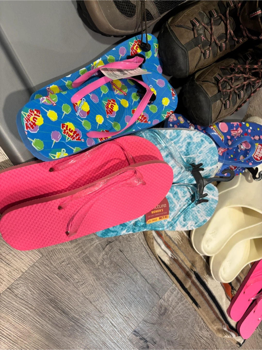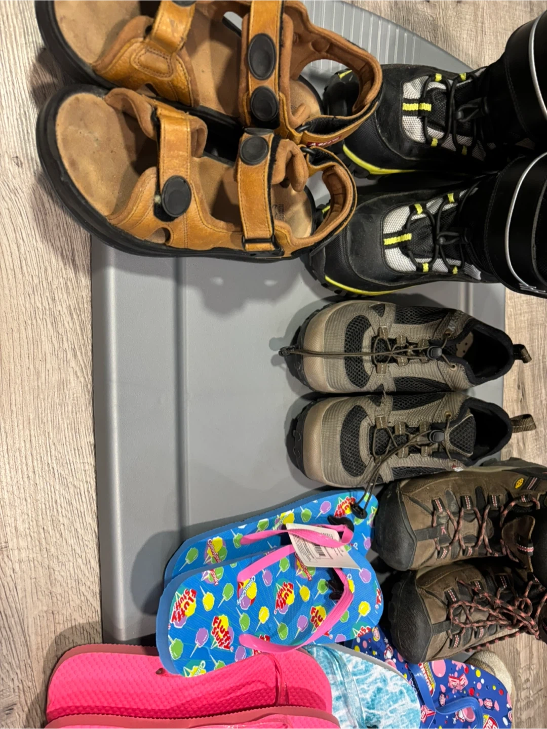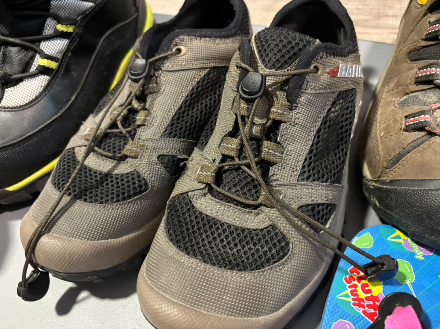 Prices are FIRM and can go as a bundle or separately PICKUP ONLY NO DELIVERY Everything is either brand new never worn with tags or gently/lightly used - flip flops ALL size 7-8 (M) except one pink pair is kids size L (2/3) —$5 EACH -white slides approx size 7-8 — $5 -baffin shoes size 6 — $10 -keen hiking boots size 7.5 — $100 -MBT rocker sandals EUR size 37 — $100 -black green boots size 5 — $40 Or goes altogether for $200 See pictures for details