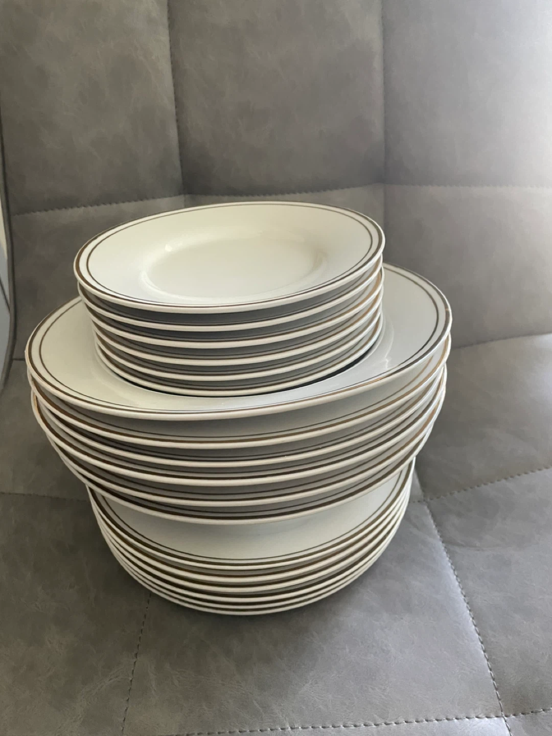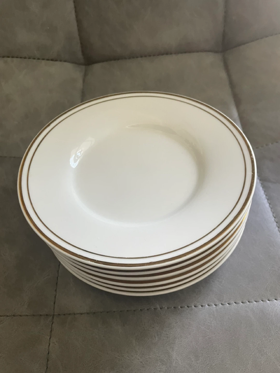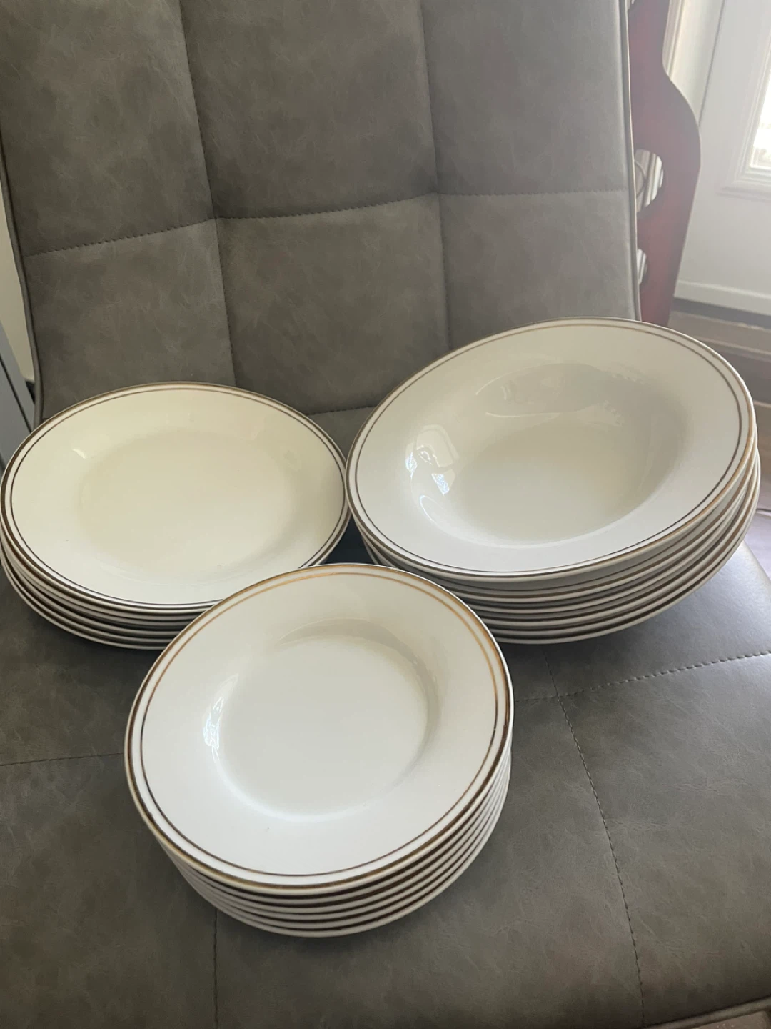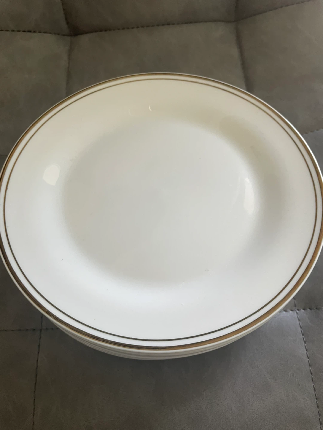 Selling a set of dinner plates with a lovely gold trim Amd matching bowls. They're perfect for adding a touch of elegance to your dining table. They are in good condition and ready for a new home!