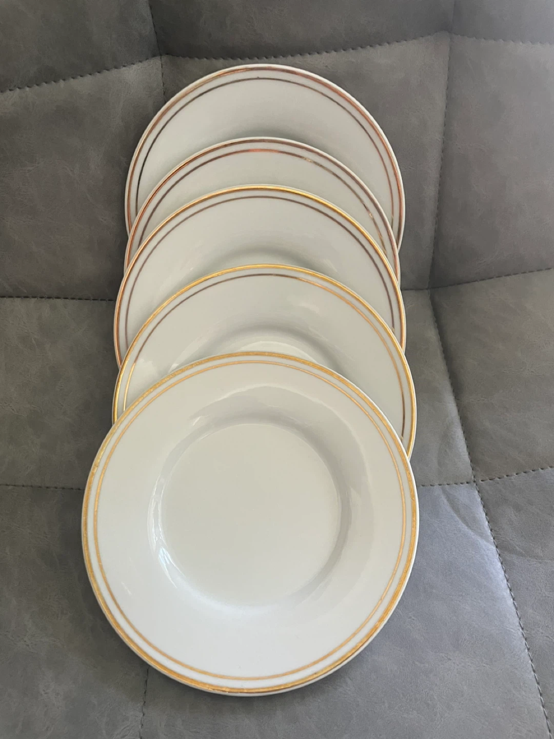 Dinner Plates and Bowls with Gold Trim