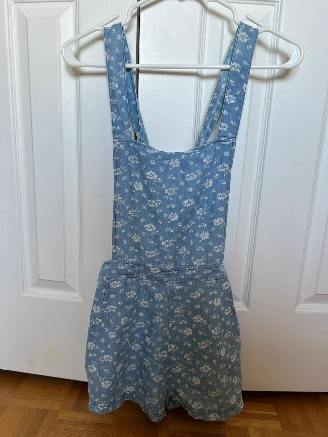 🥕 Baby Blue Parisian Collection Floral Short Overalls Size S/P
