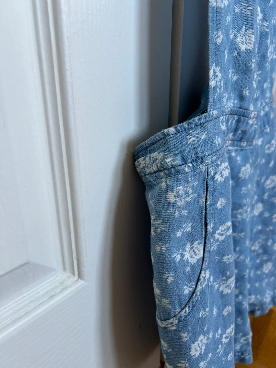Cute denim overalls from Parisian Collection! They feature a lovely floral pattern on a light blue material. Size S/P.